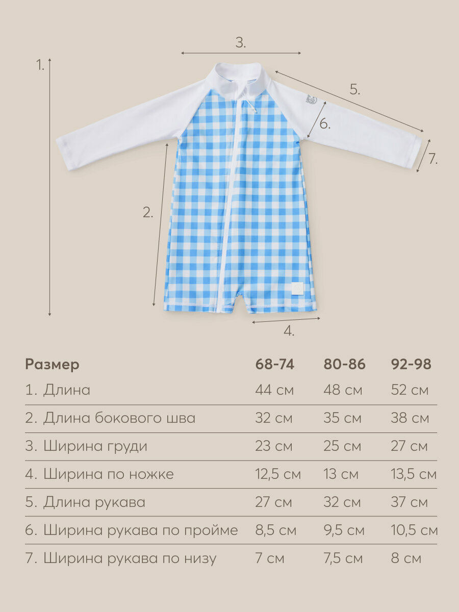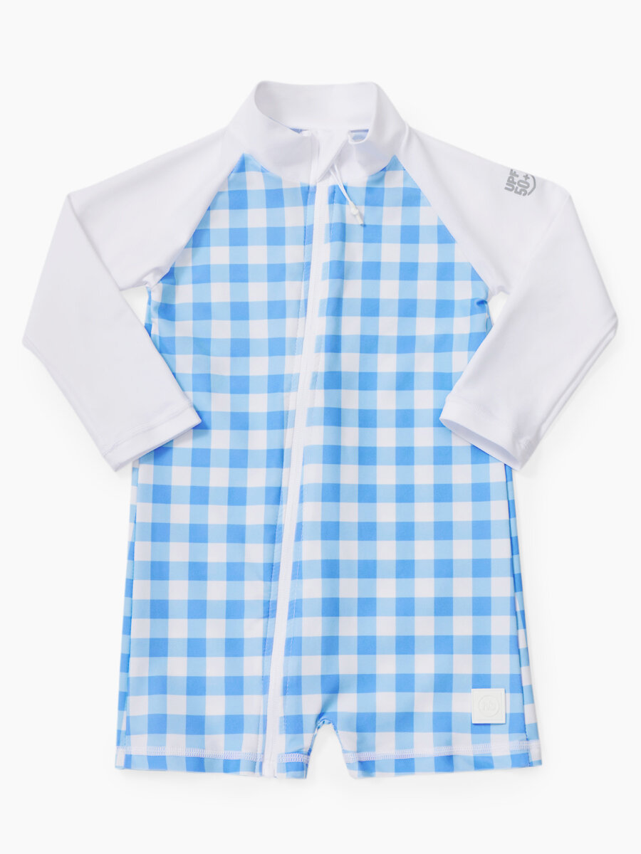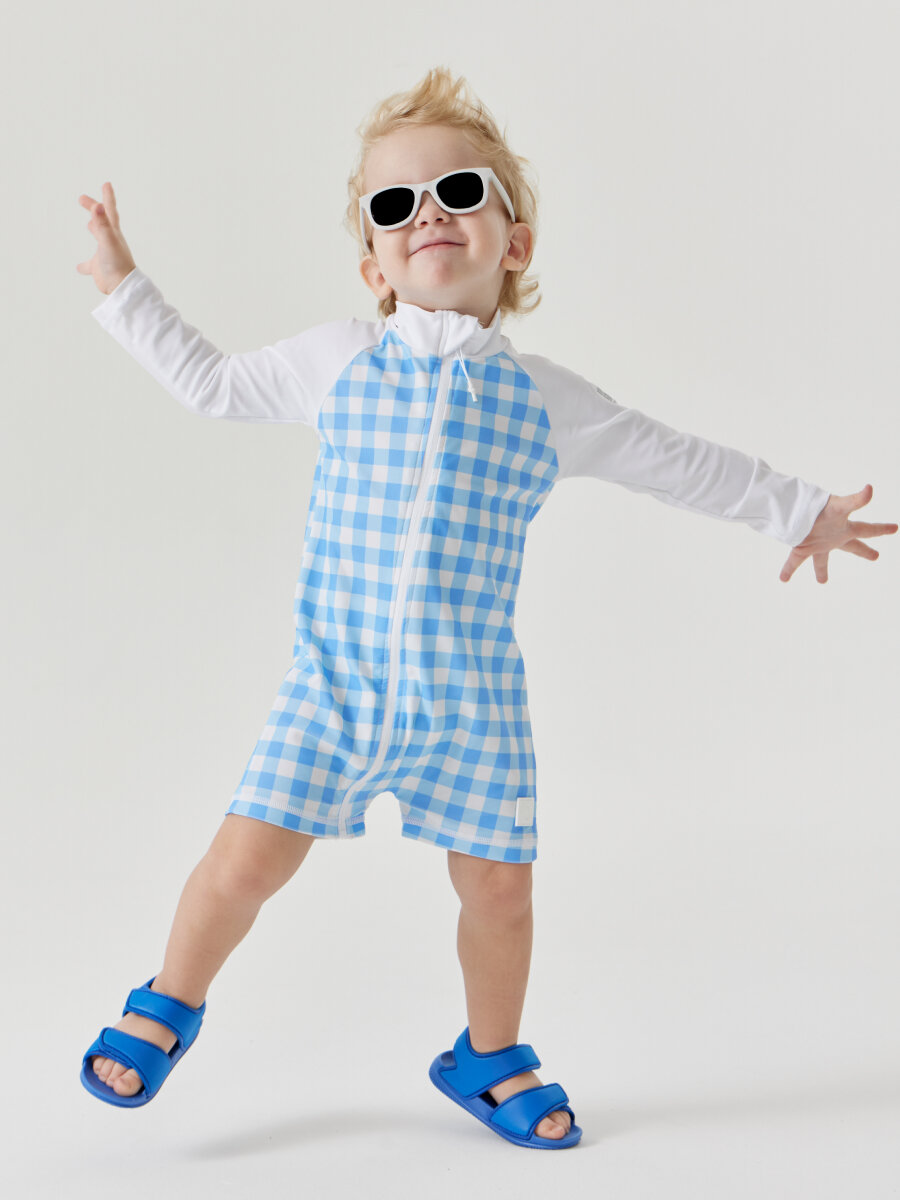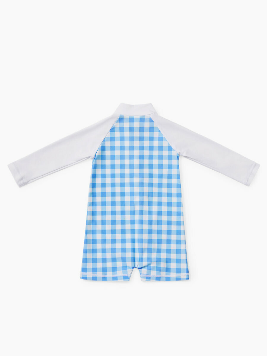 50654, Купальник слитный детский для девочки Happy Baby, купальный костюм закрытый, для пляжа и для бассейна, голубой в клетку , размер 68-74 интересное: