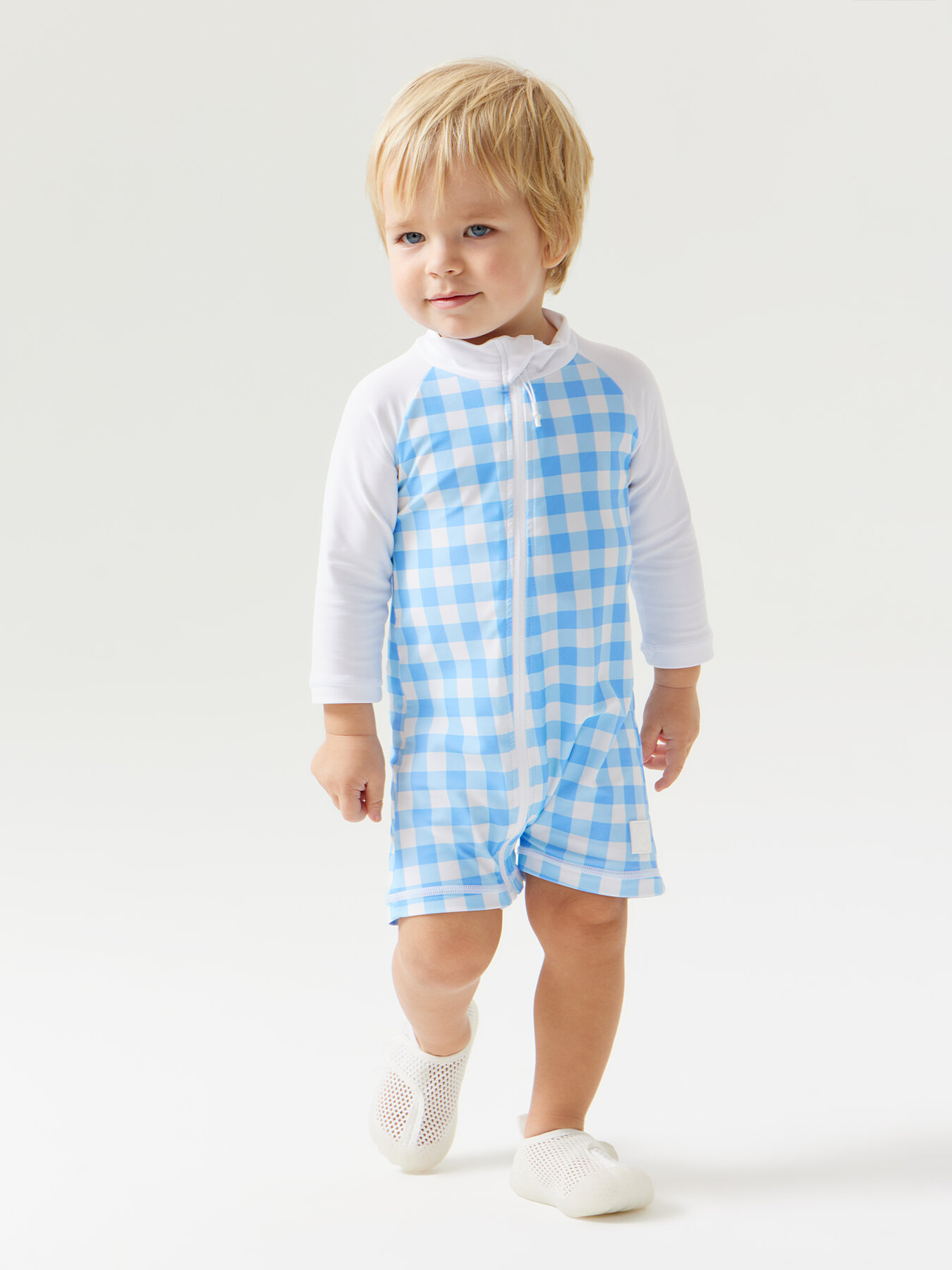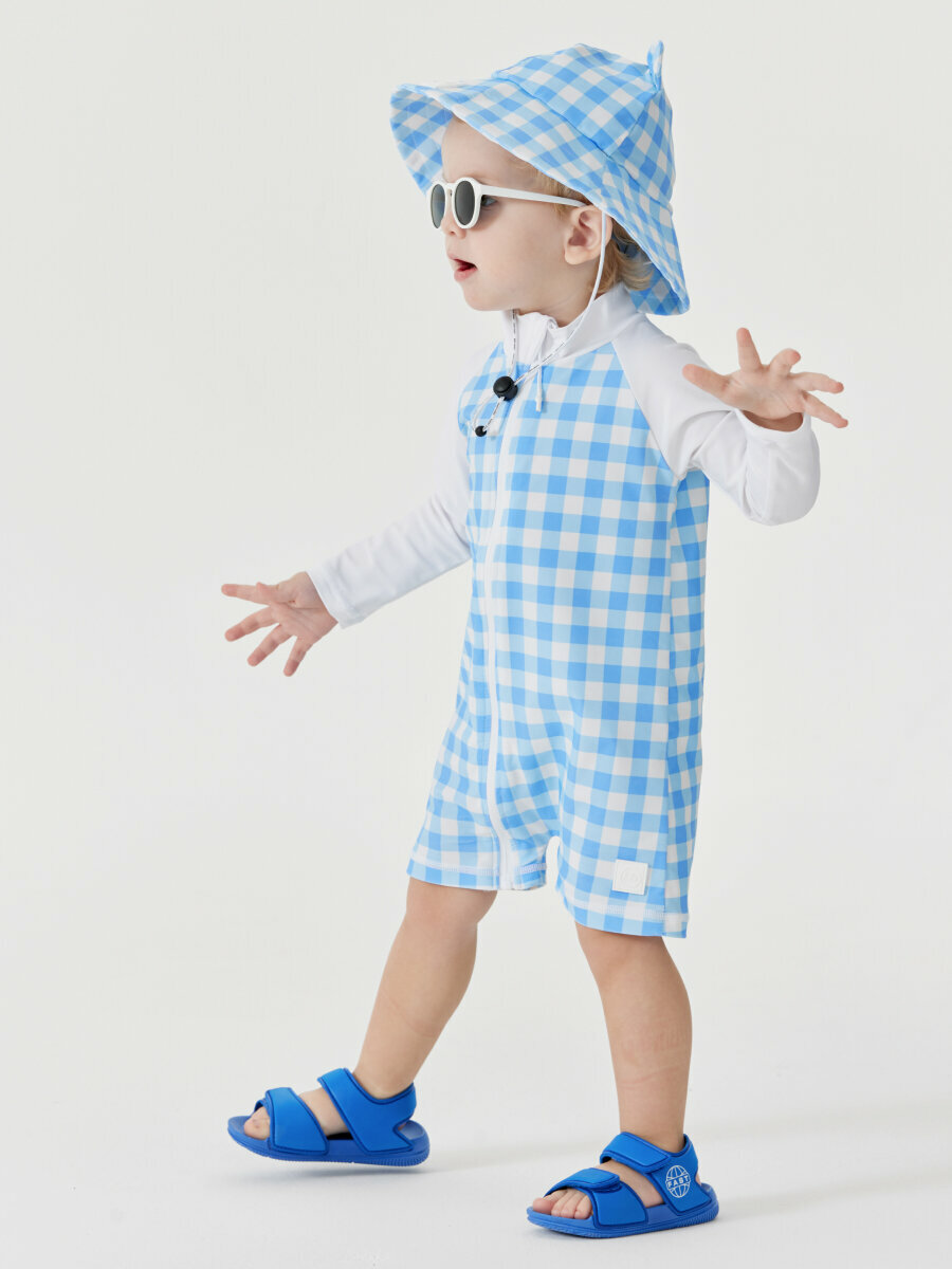 Купить 50654, Купальник слитный детский для девочки Happy Baby, купальный костюм закрытый, для пляжа и для бассейна, голубой в клетку , размер 68-74