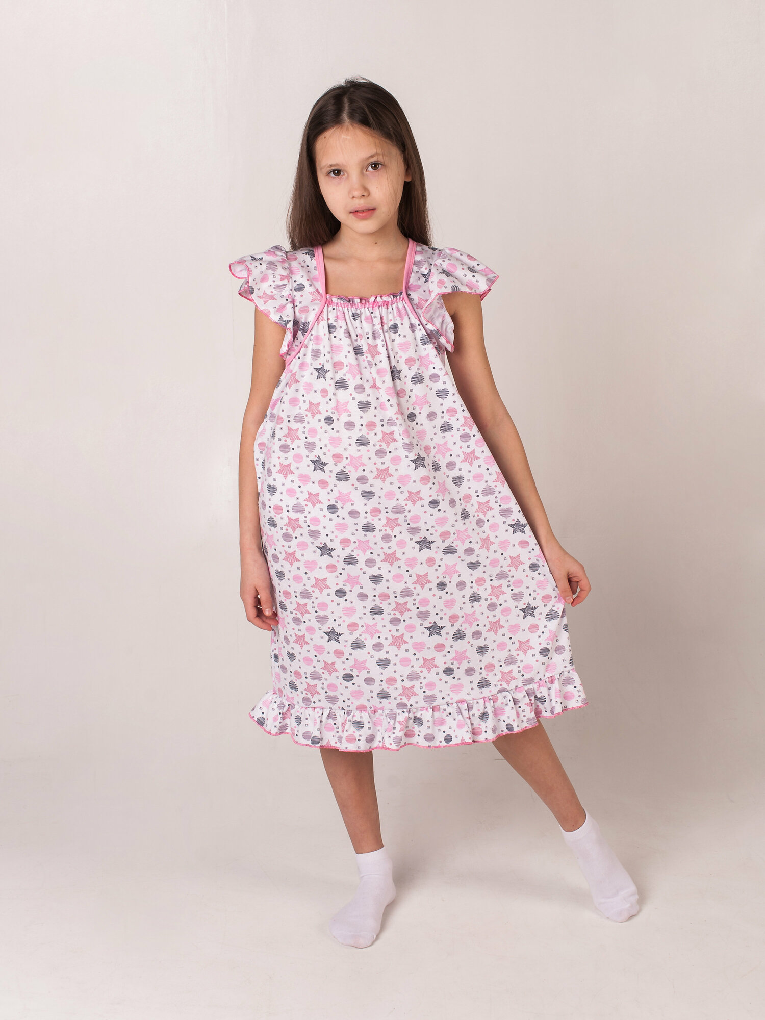 Ночная сорочка, белые, розовые звезды, размер 134