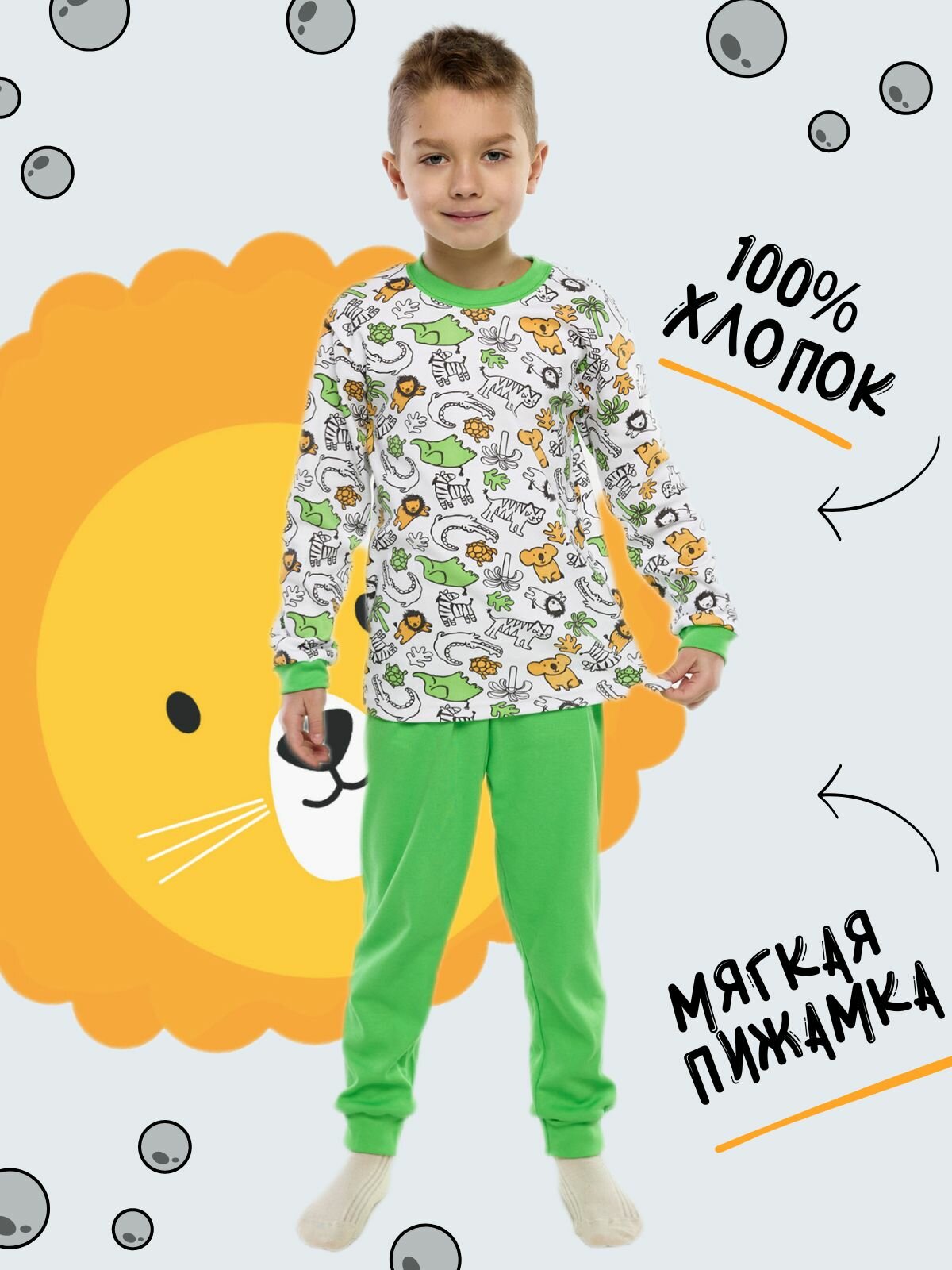 Домашняя пижама, Дети в Цвете, цвет зеленый, размер 104