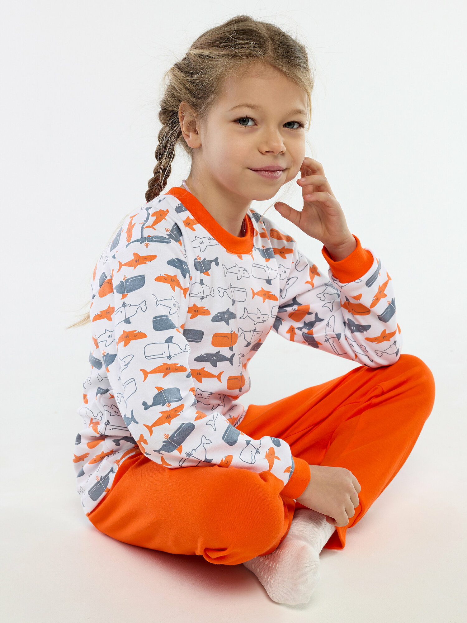 Пижама Дети в цвете, размер 36-128, оранжевый/белый
