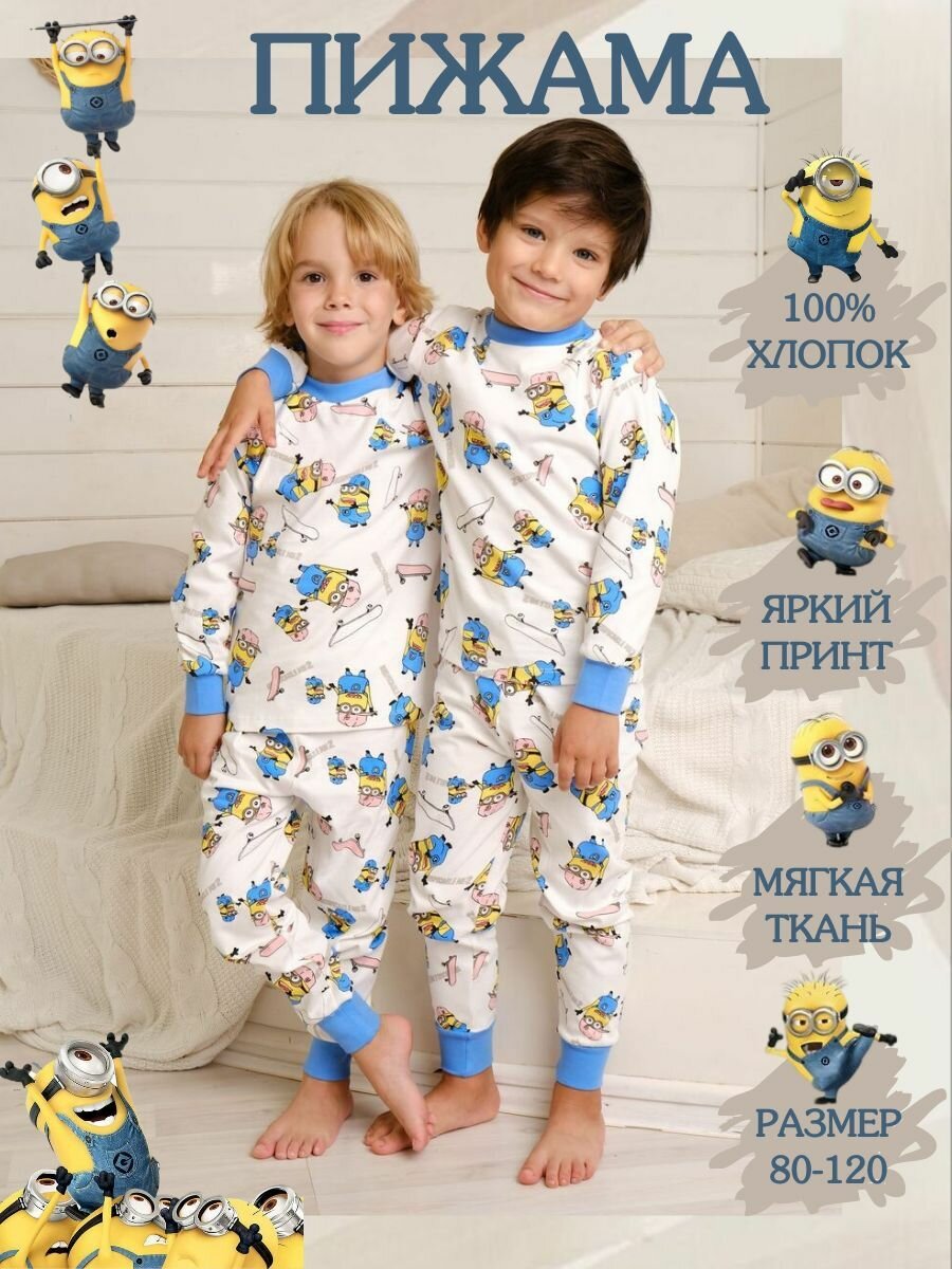 Купить Пижама Fonuters для мальчиков, брюки, лонгслив с манжетами, Хлопок, Миньен, размер 90-100, белый, голубой