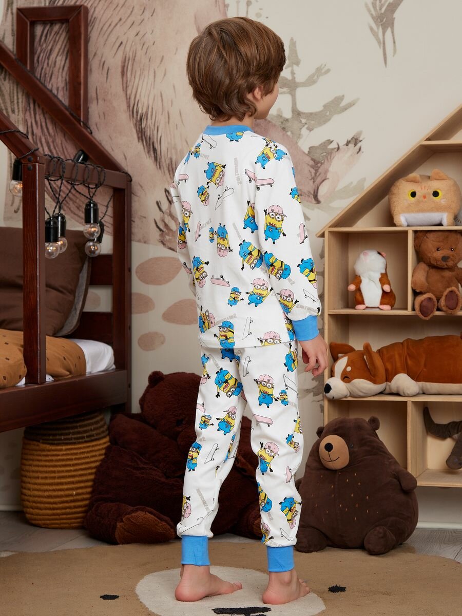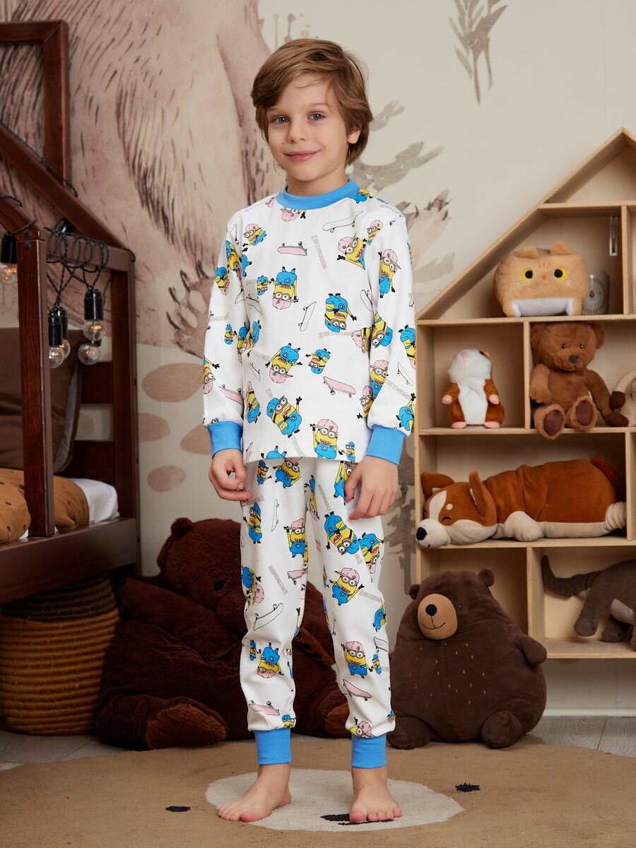Купить Пижама Fonuters для мальчиков, брюки, лонгслив с манжетами, Хлопок, Миньен, размер 100-110, белый, голубой