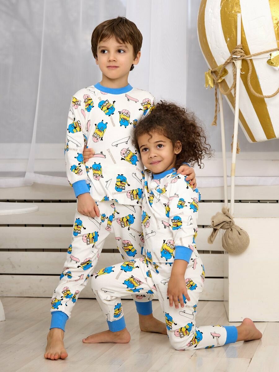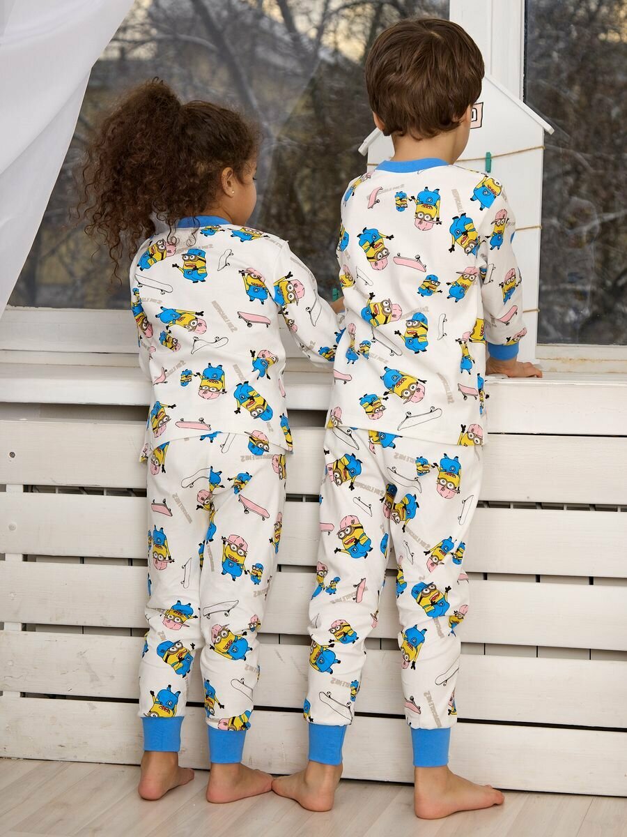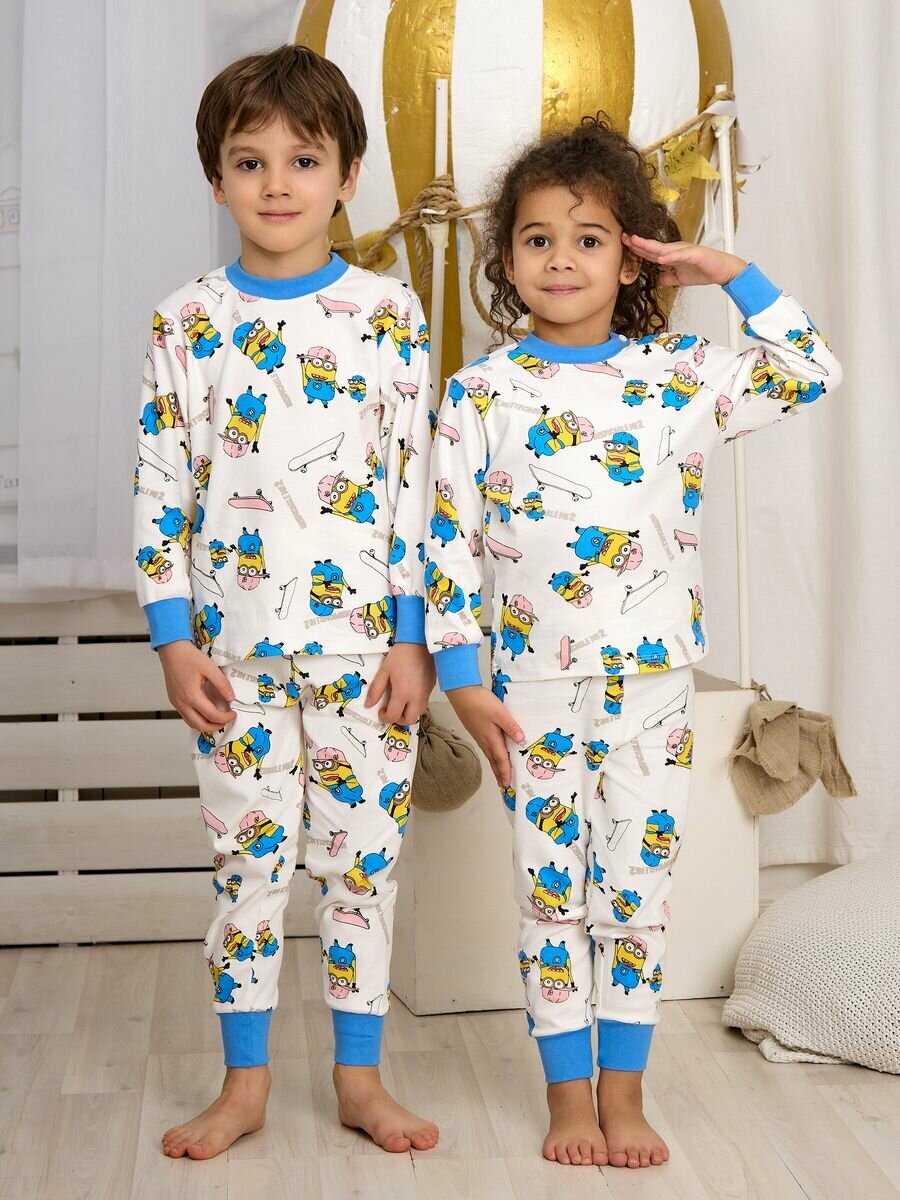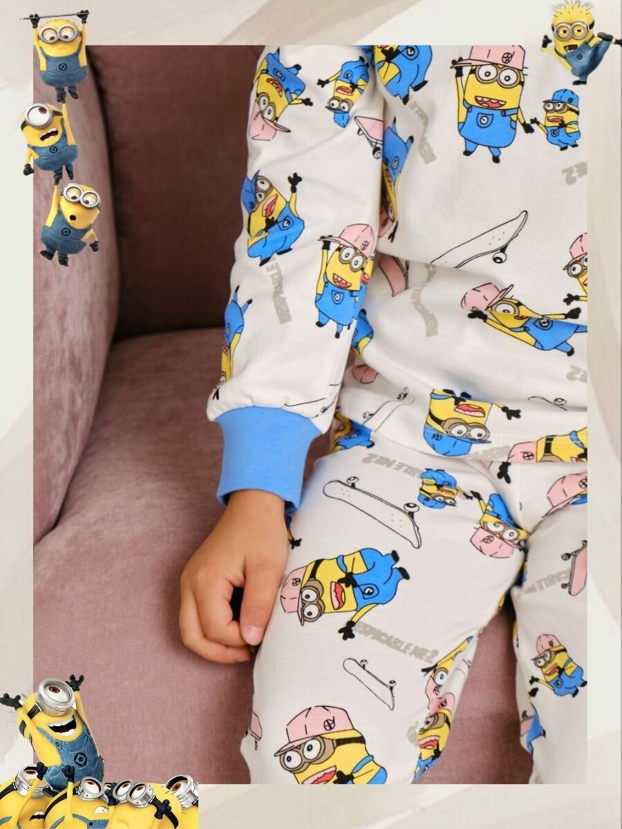 СохранитьПижама Fonuters для мальчиков, брюки, лонгслив с манжетами, Хлопок, Миньен, размер 100-110, белый, голубой интересное: