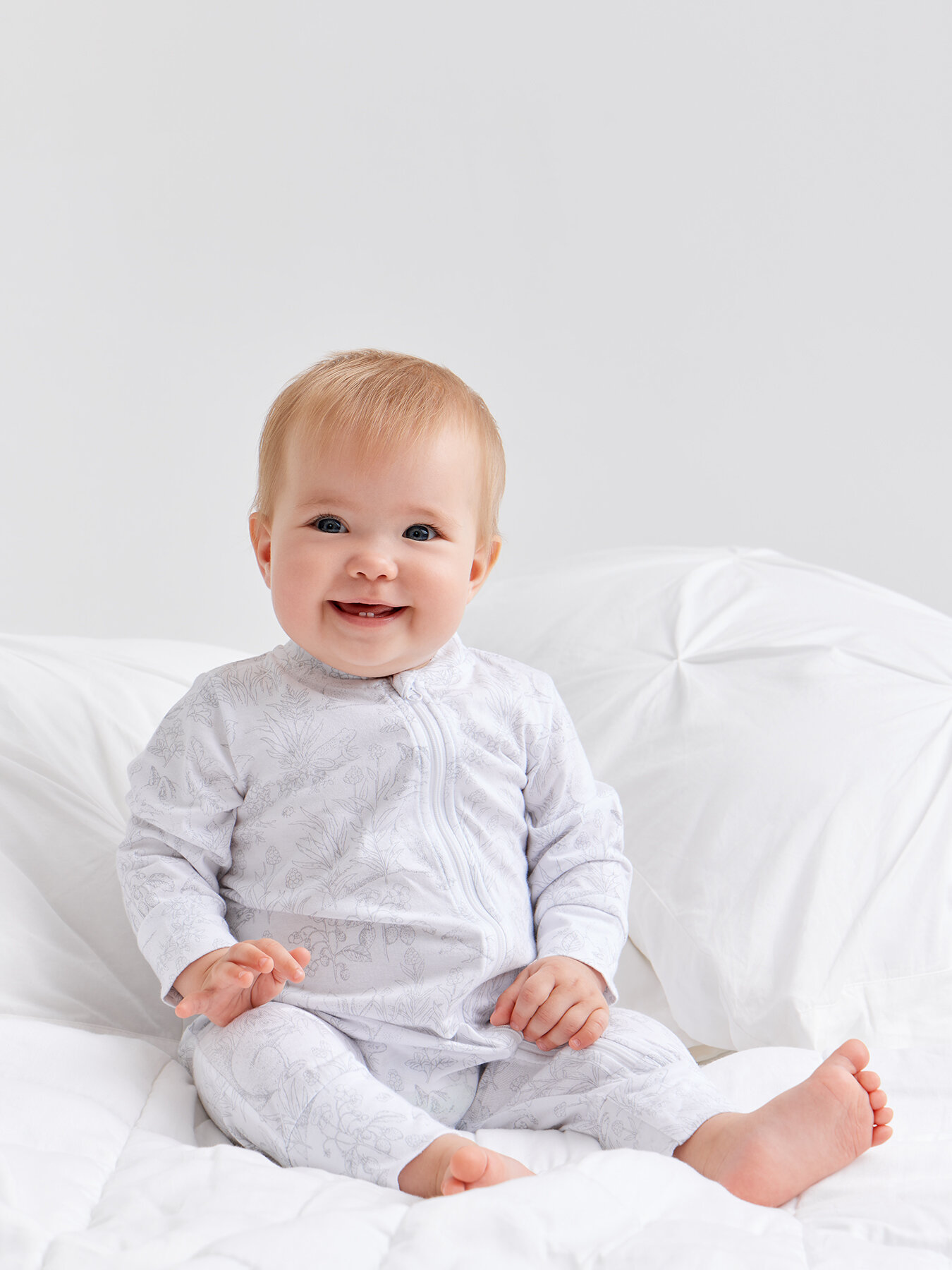 90114, Комбинезон для новорожденных Happy Baby для мальчика и для девочки на молнии, под подгузник, хлопковый, белый, флористический принт, 80