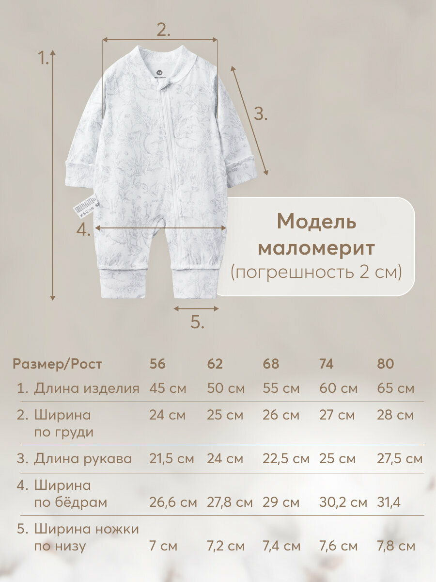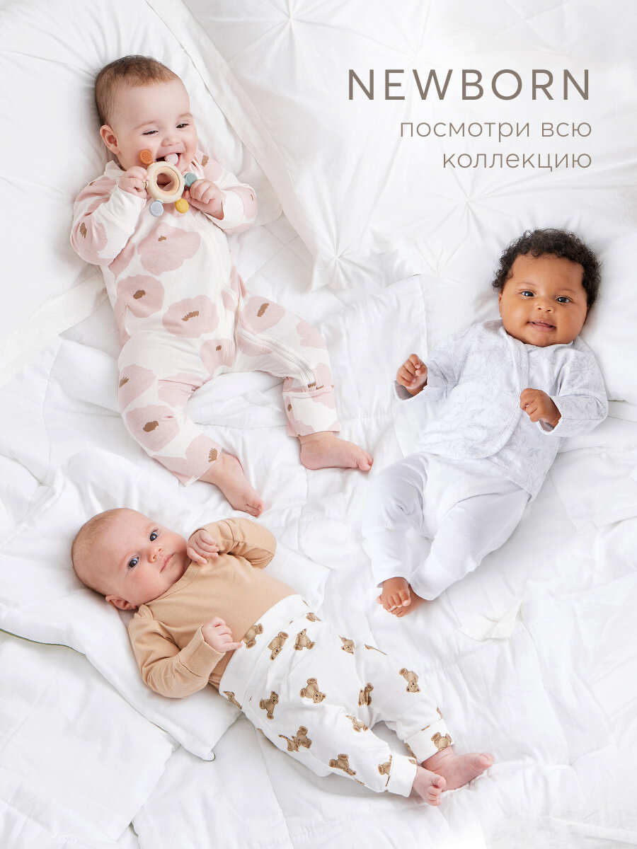 Сохранить90114, Комбинезон для новорожденных Happy Baby для мальчика и для девочки на молнии, под подгузник, хлопковый, белый, флористический принт, 68 интересное: