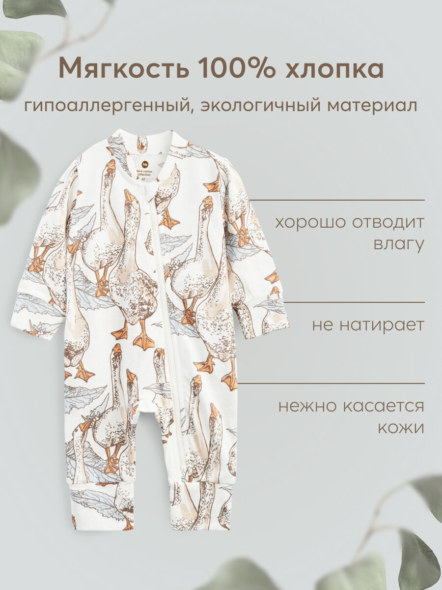 Сохранить90114, Комбинезон для новорожденных Happy Baby детский для мальчика и для девочки на молнии, под подгузник, хлопоковый, бежевый с гусями, рост 74 интересное:
