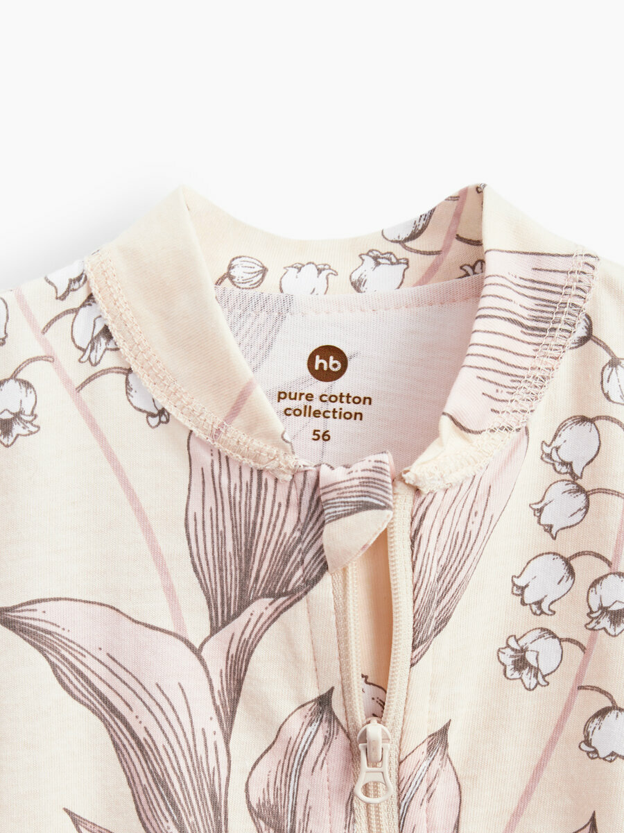 90114, Комбинезон для новорожденных Happy Baby детский для мальчика и для девочки на молнии, под подгузник, розовый, флористический принт, рост 80