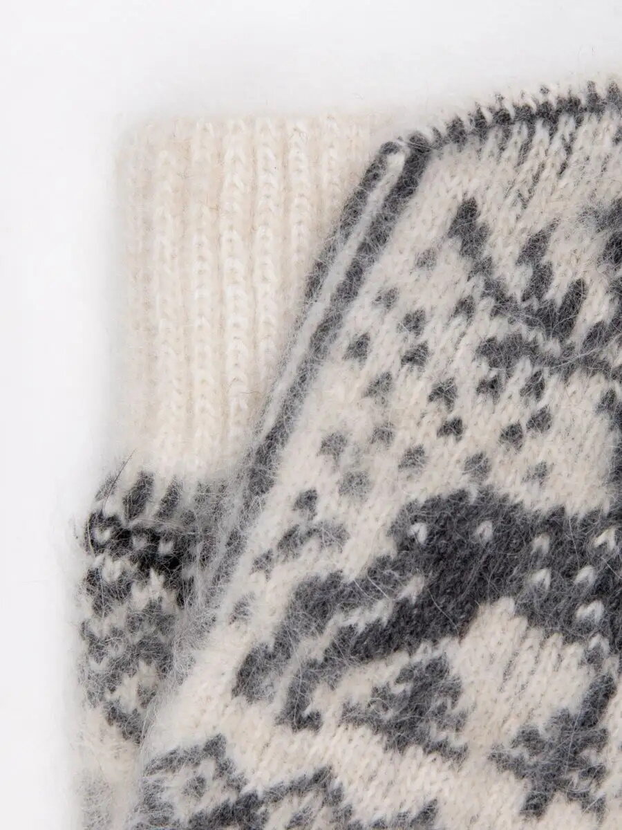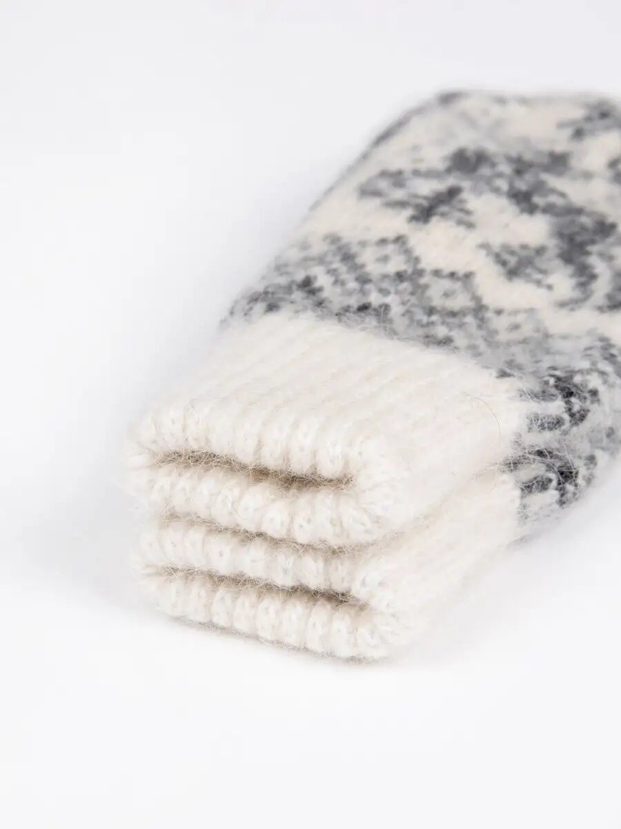 Шерстяные варежки женские, 100 % козья шерсть, скандинавский орнамент, серый цвет, 6-8 размер