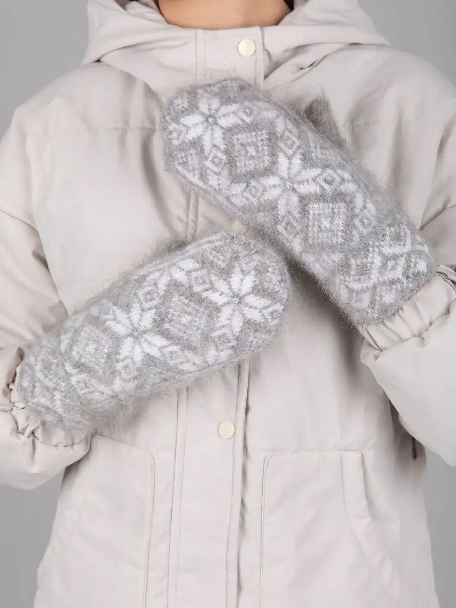 Шерстяные варежки женские, 100 % козья шерсть, скандинавский орнамент, серый цвет, 6-8 размер