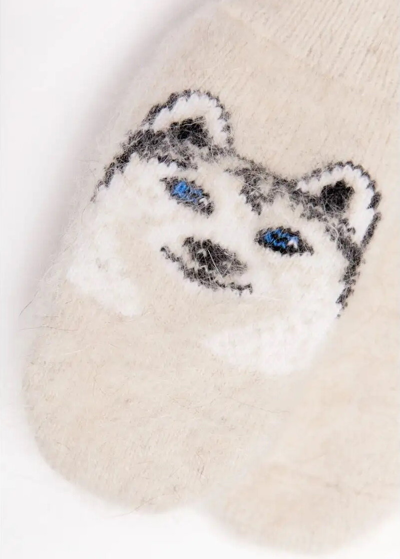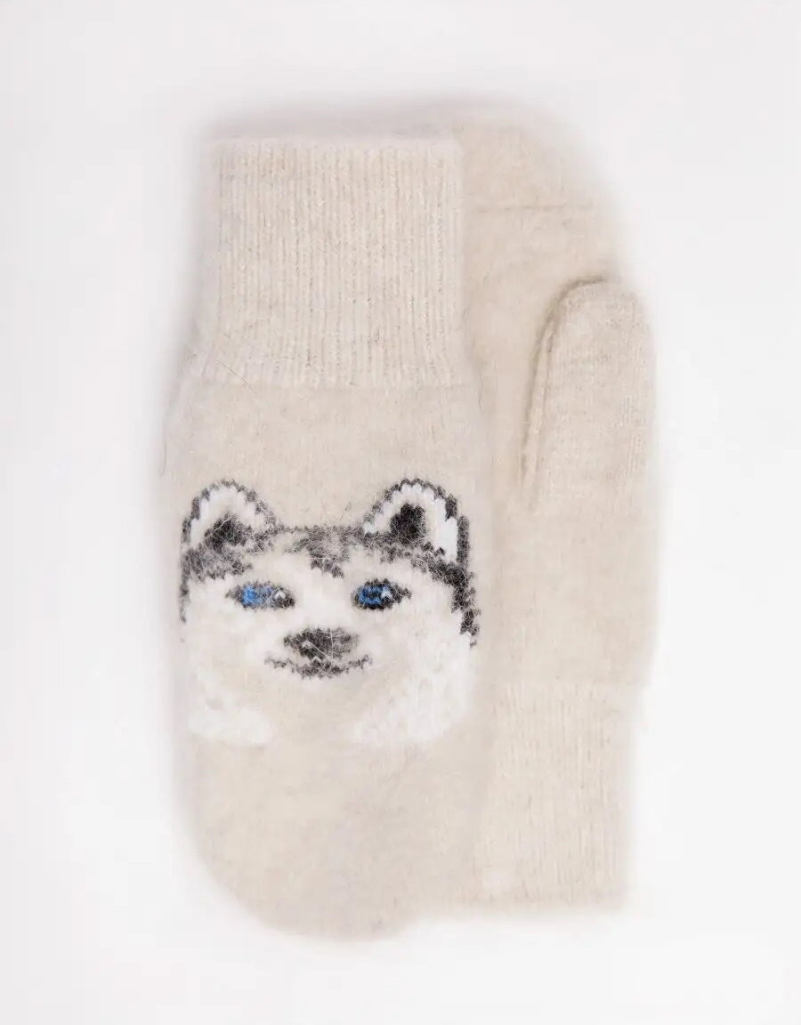 Купить Шерстяные варежки женские , 100% козья шерсть, рисунок собака Хаски, 6-8 размер