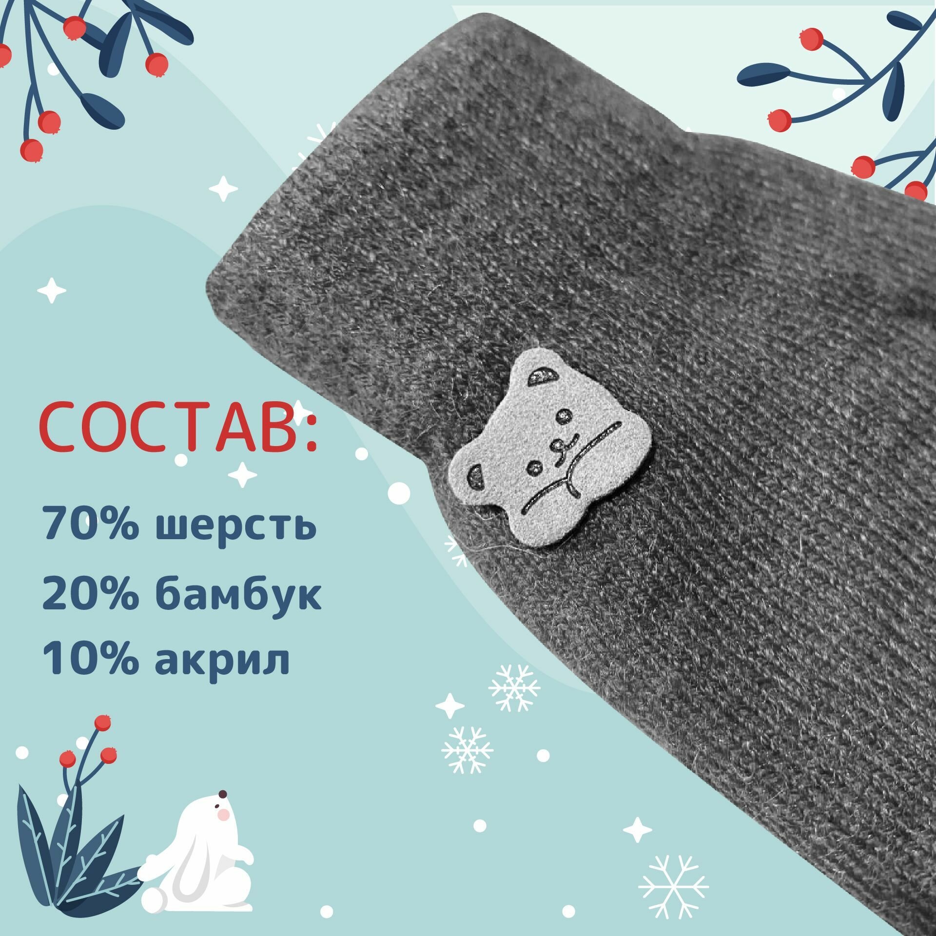 Купить Детские варежки с веревочкой 2-4 года. Варежки зимние двухслойные серые