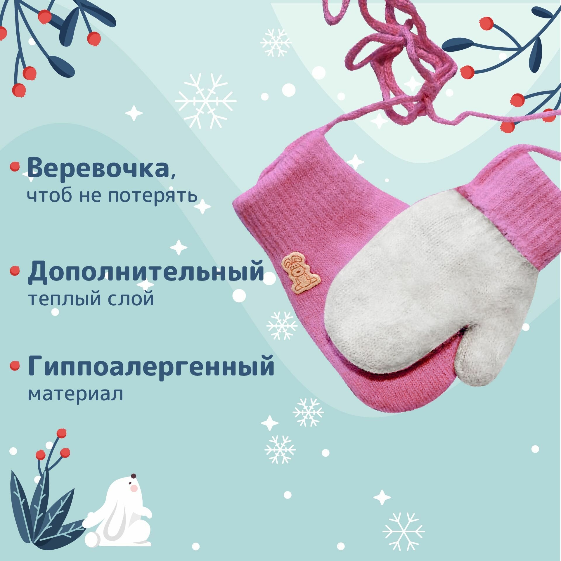 Купить Детские варежки с веревочкой 2-4 года. Варежки зимние двухслойные розовые