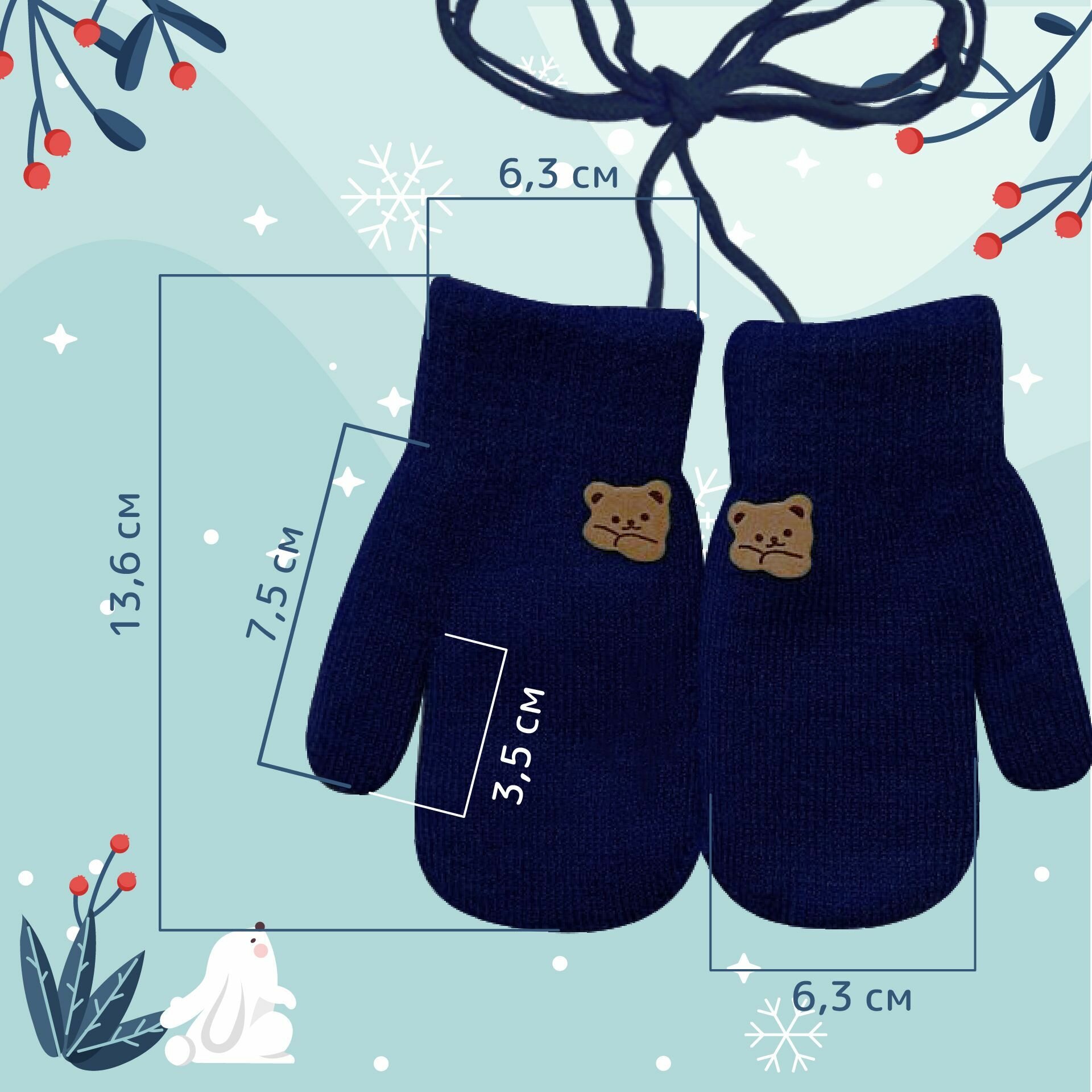 СохранитьДетские варежки с веревочкой 2-4 года. Варежки зимние двухслойные темно-синие интересное: