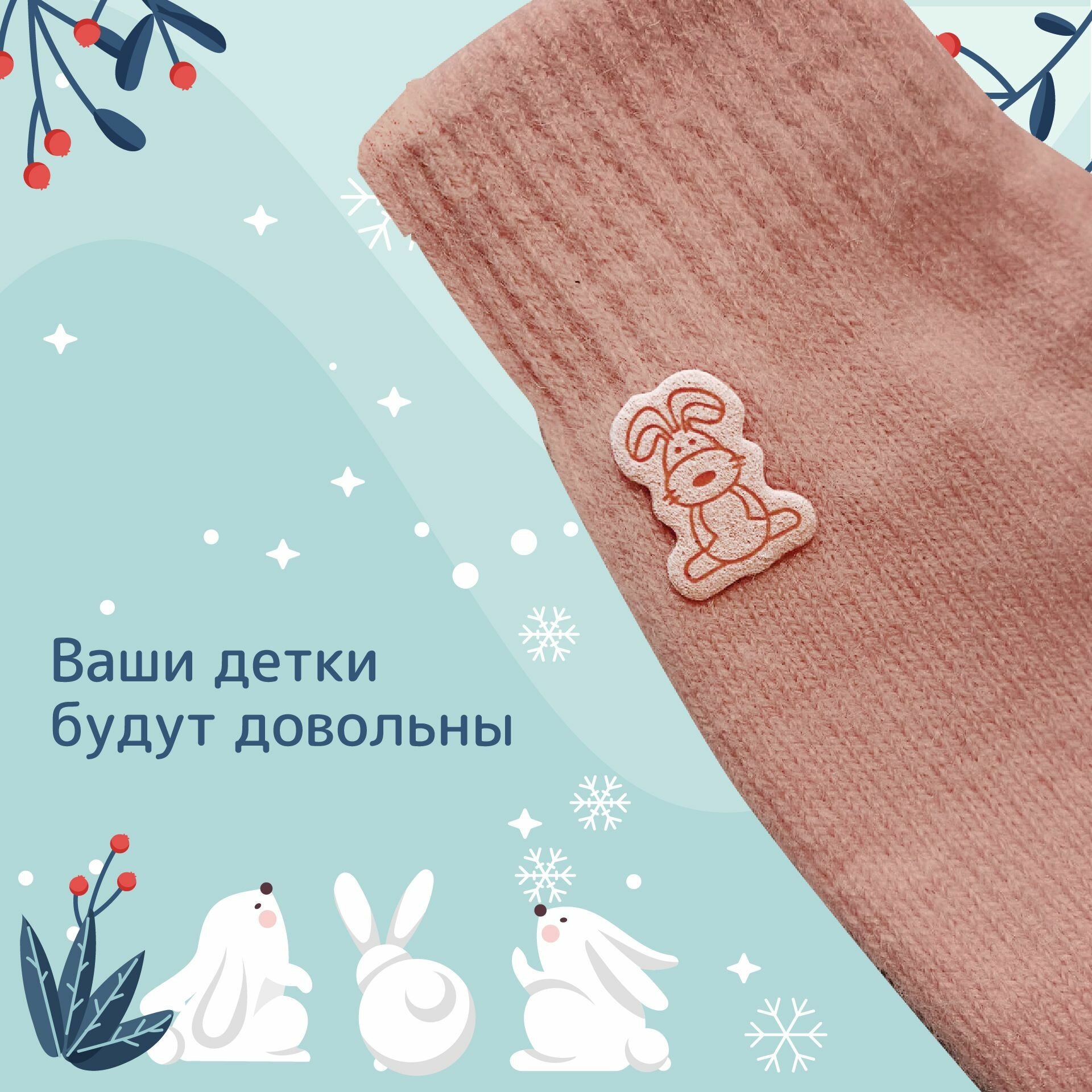 Детские варежки с веревочкой 2-3 года. Варежки зимние двухслойные персиковые