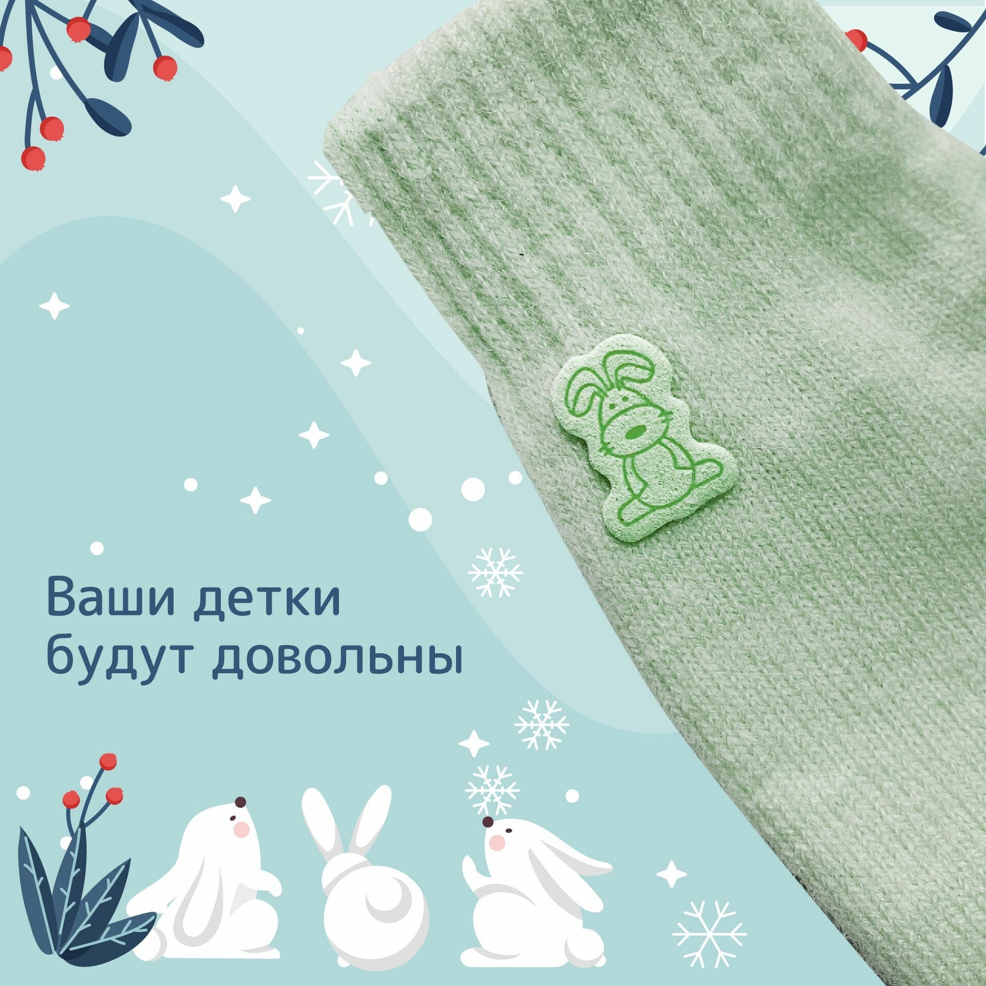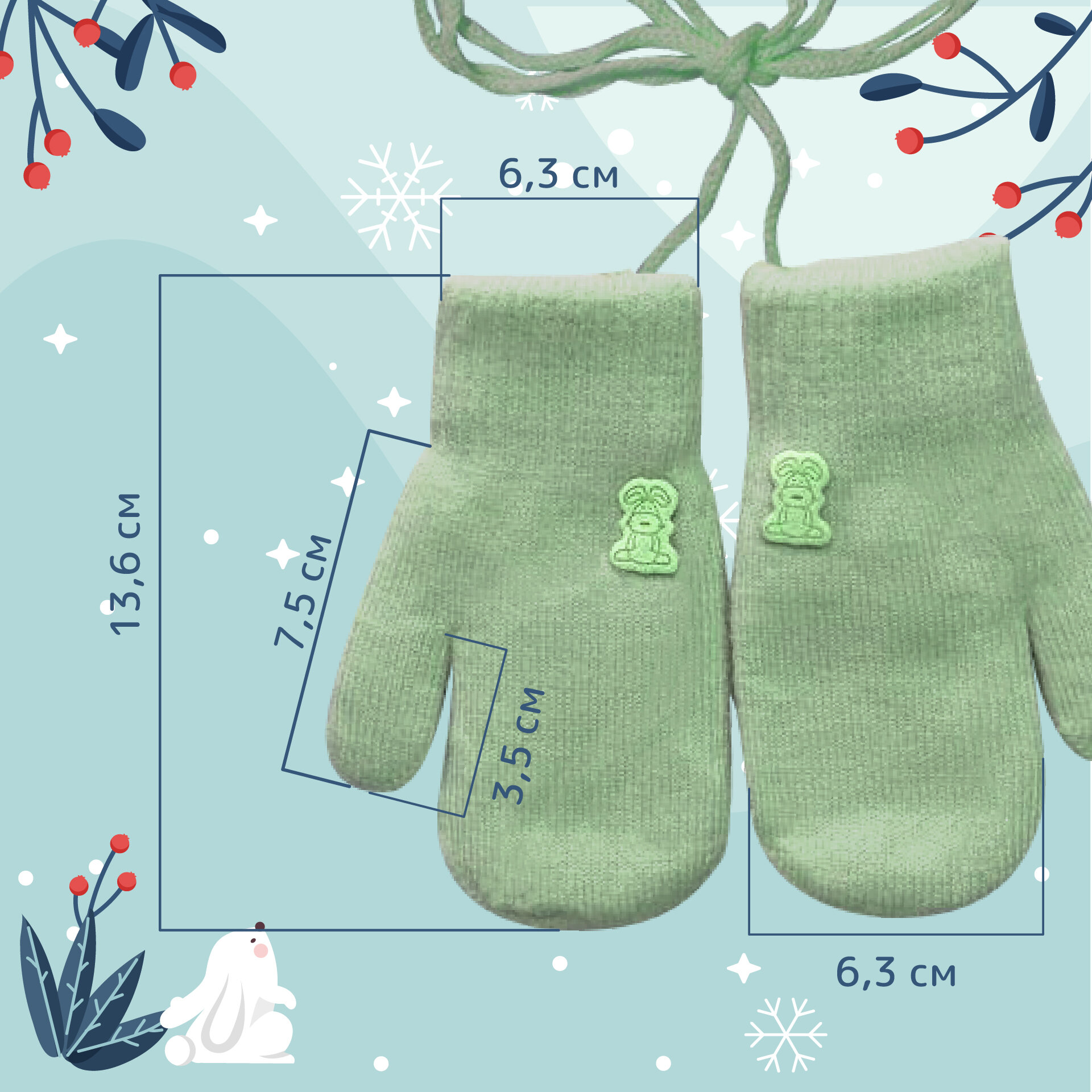 Купить Детские варежки с веревочкой 2-4 года. Варежки зимние двухслойные светло-зеленые