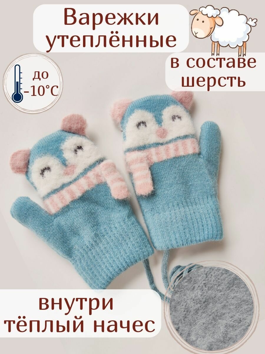Купить Детские варежки с пингвином / Зимние варежки на веревочке с милым "Пинги - Винди", голубой