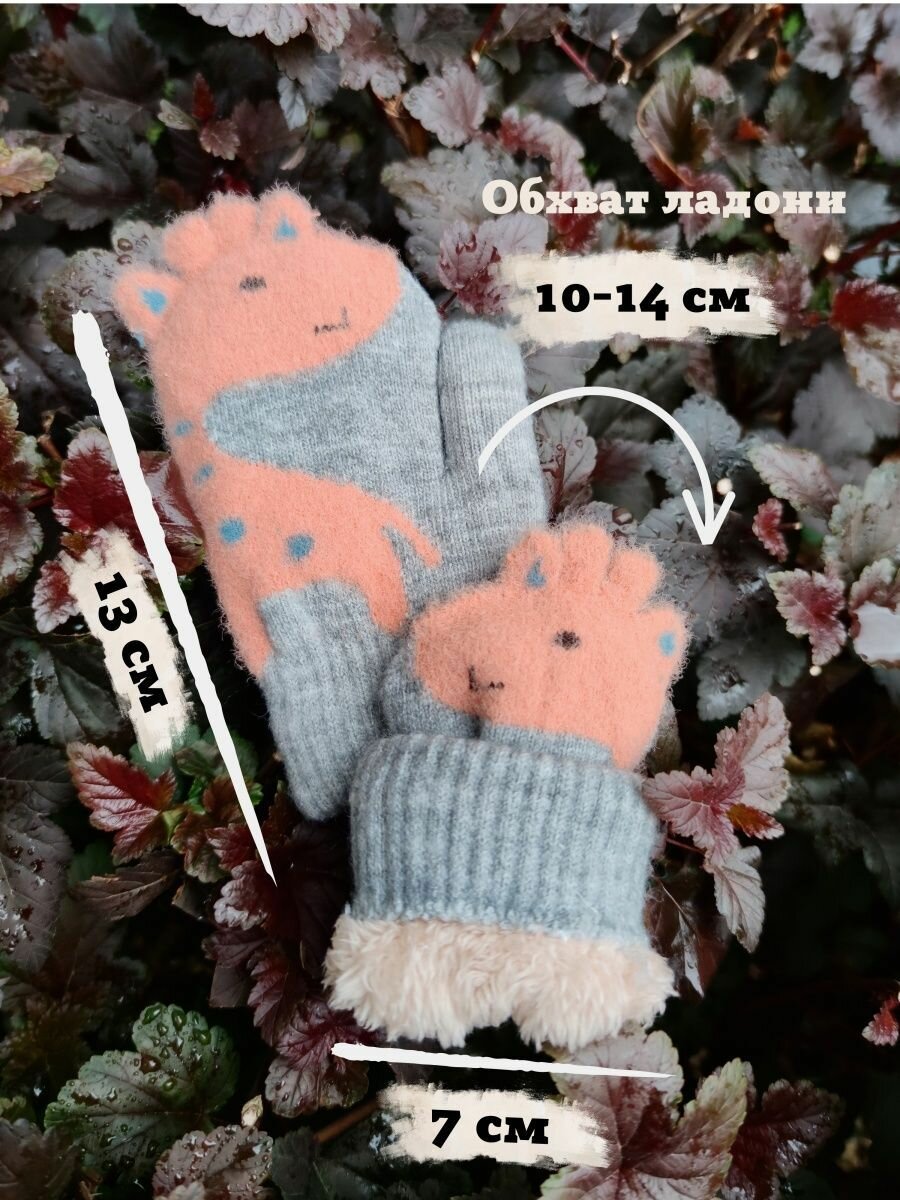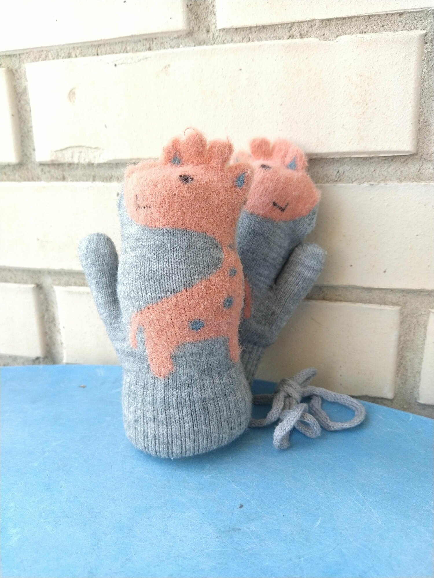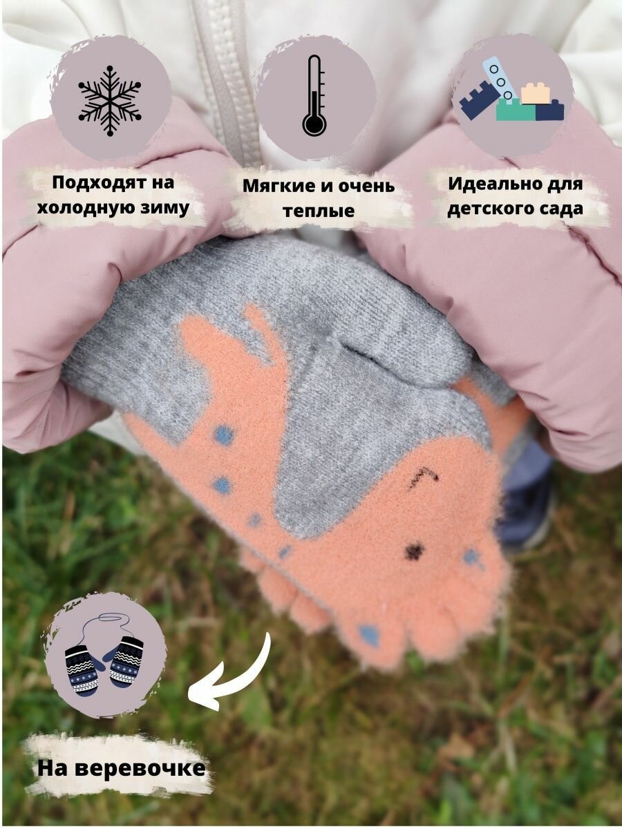 Детские варежки с жирафом / Зимние варежки на веревочке с милым "Жира - Фом", персиковые