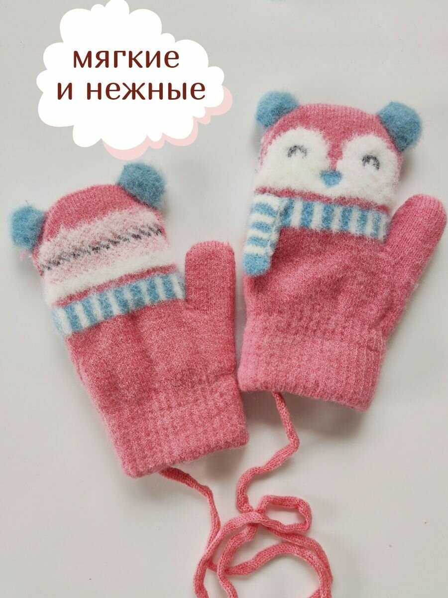 Детские варежки с жирафом / Зимние варежки на веревочке с милым "Жира - Фом", коралловые