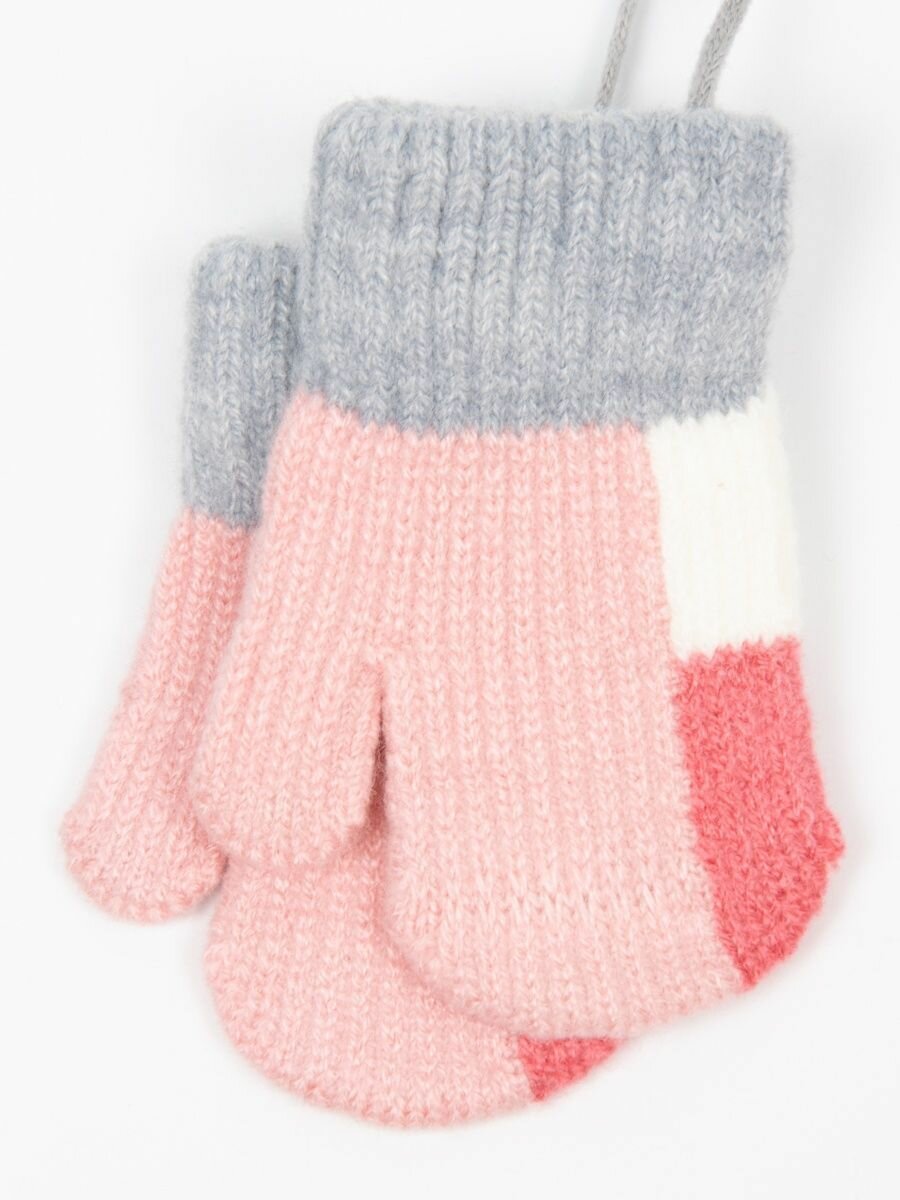 Купить Детские варежки одинарные трехцветные / Зимние варежки на веревочке, цвет: розовый