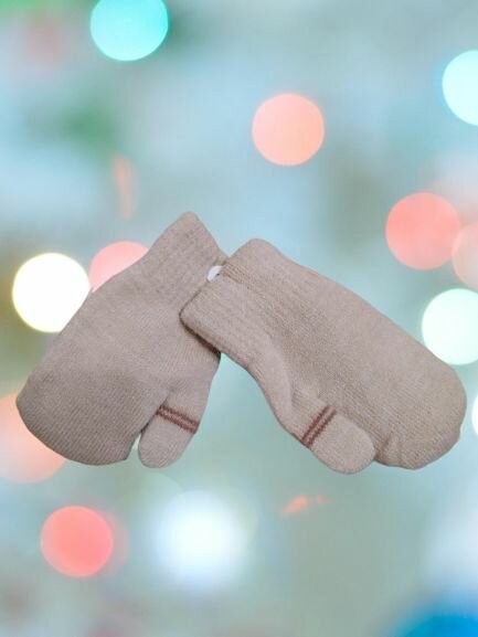 Детские варежки с жирафом / Зимние варежки на веревочке с милым "Жира - Фом", телесные