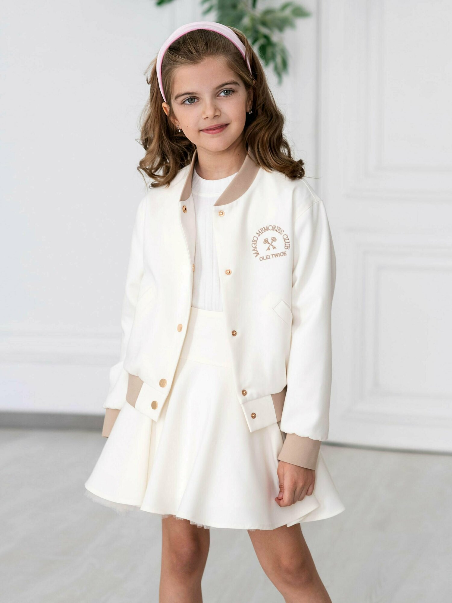 Жакет Бомбер OleTwice на кнопках для девочки 7235034(Молочный), р-р 128