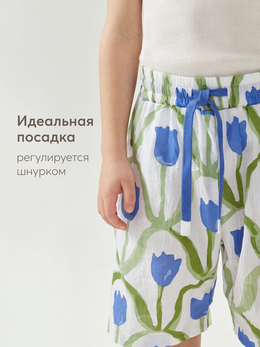 88120, Шорты детские хлопковые Happy Baby, шорты для мальчика и для девочки, на завязках, летние, для пляжа, мильфлёр, размер 122-128