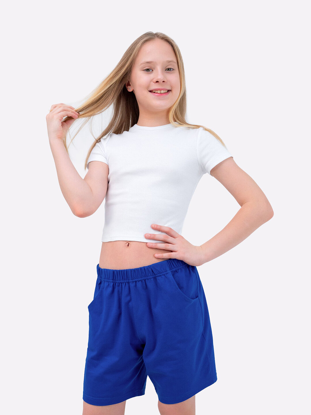 СохранитьОднотонные шорты для детей и подростков спортивные хлопок HappyFox, HF7701 размер 158, цвет синий интересное: