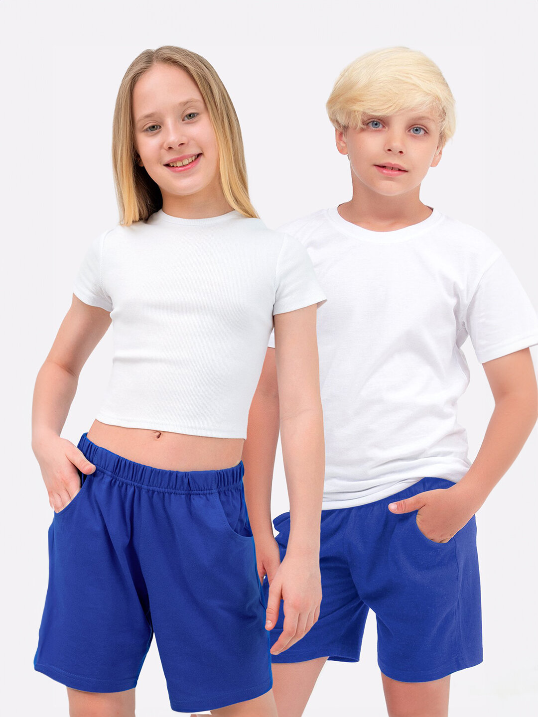 Однотонные шорты для детей и подростков спортивные хлопок HappyFox, HF7701 размер 134, цвет синий