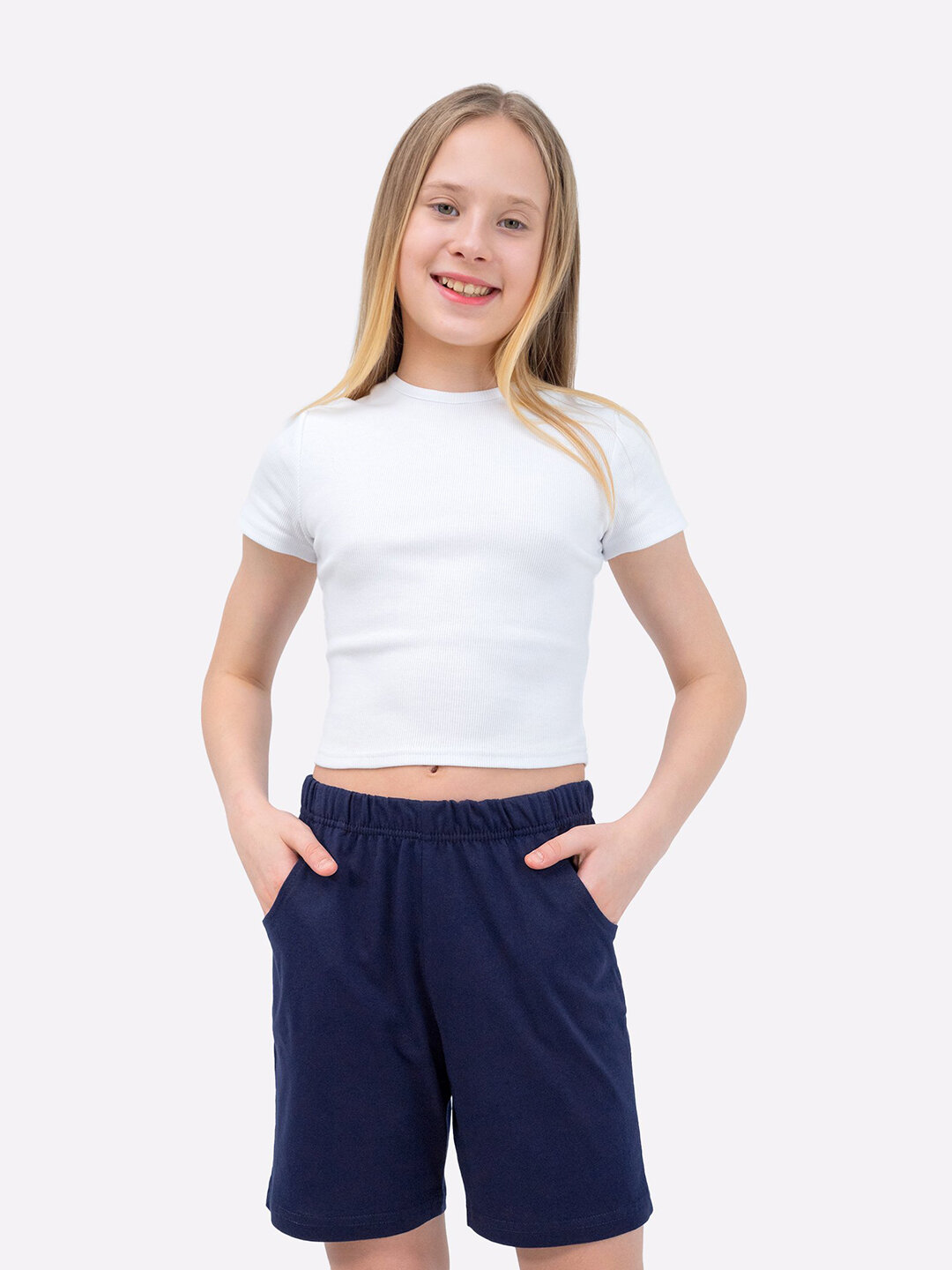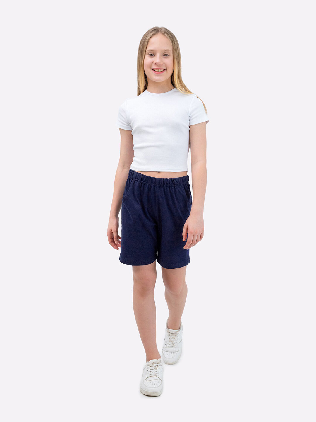 Однотонные шорты для детей и подростков спортивные хлопок HappyFox, HF7701 размер 158, цвет т.синий