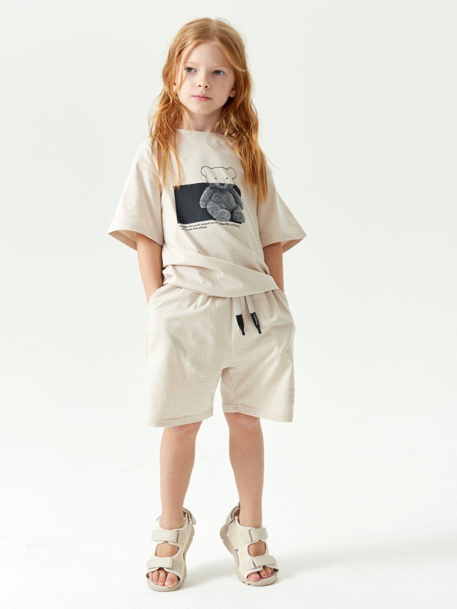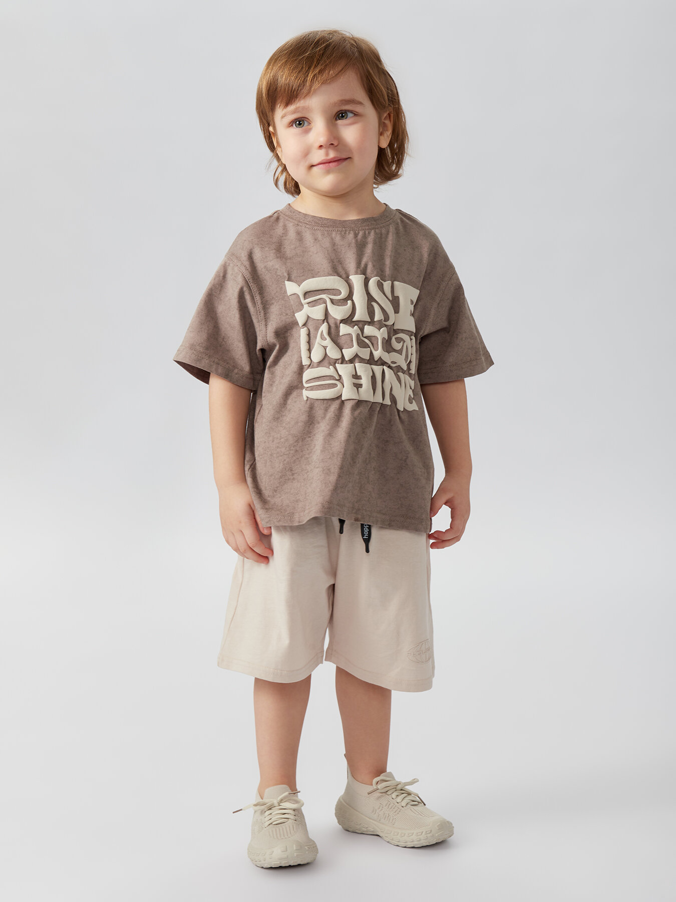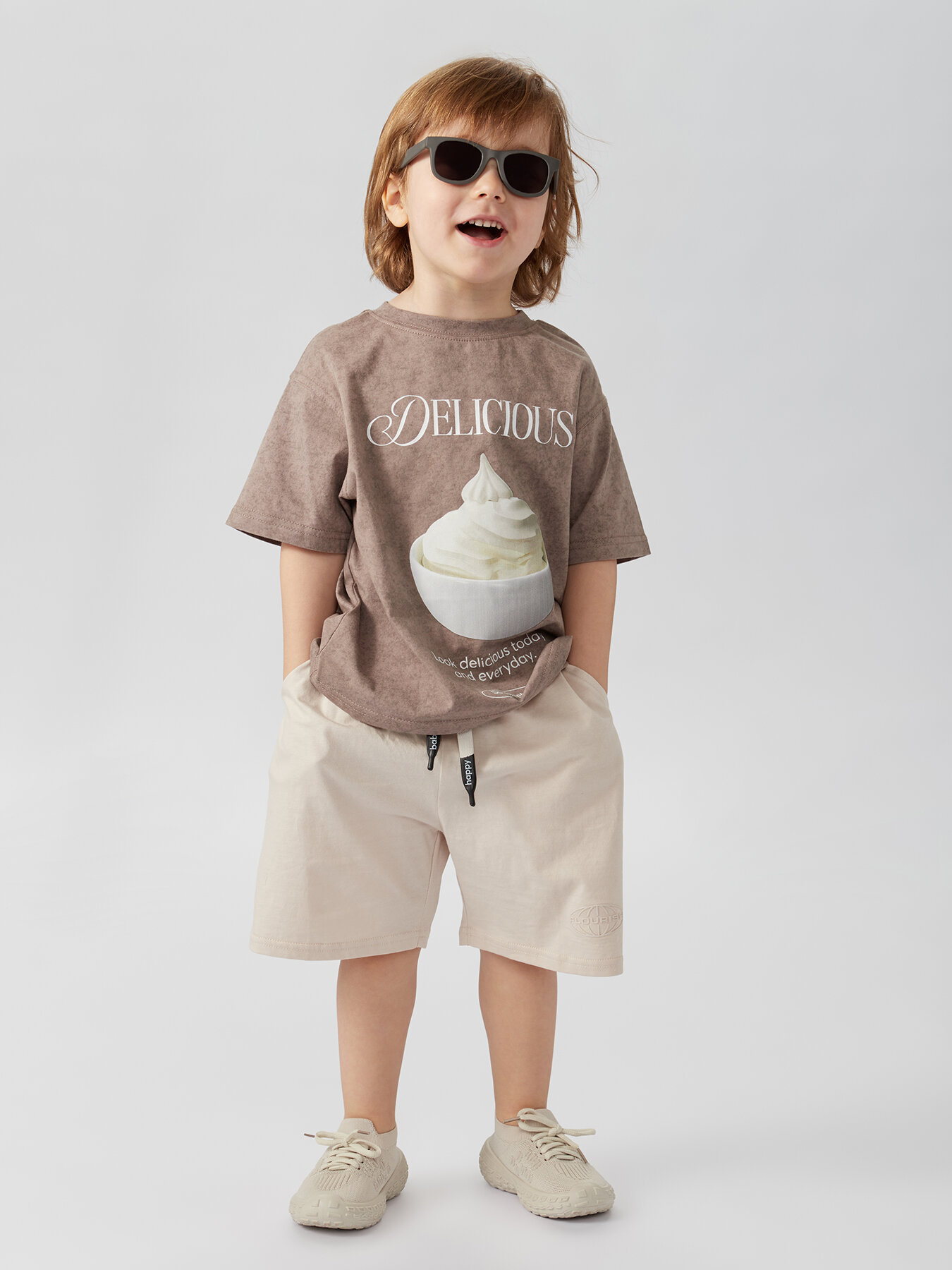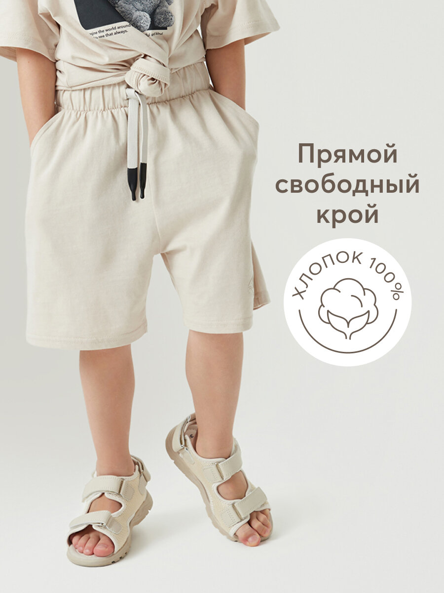 Купить 88217, Шорты детские хлопковые Happy Baby, на резинке со шнурком, для девочки и для мальчика, шорты летние, бежевые, размер 122-128