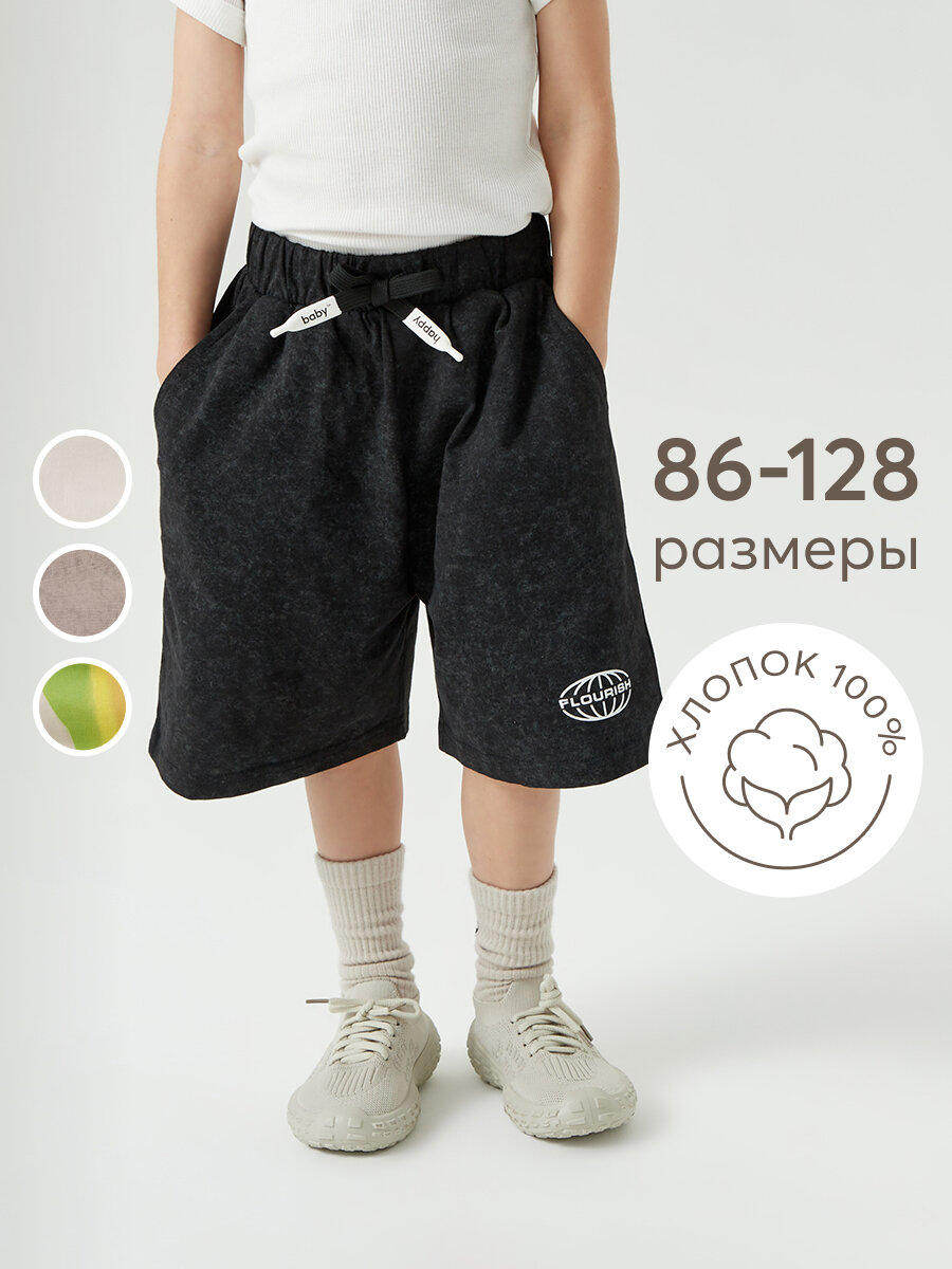 Купить 88217, Шорты детские хлопковые Happy Baby, на резинке со шнурком, для девочки и для мальчика, шорты летние, черные, размер 86-92