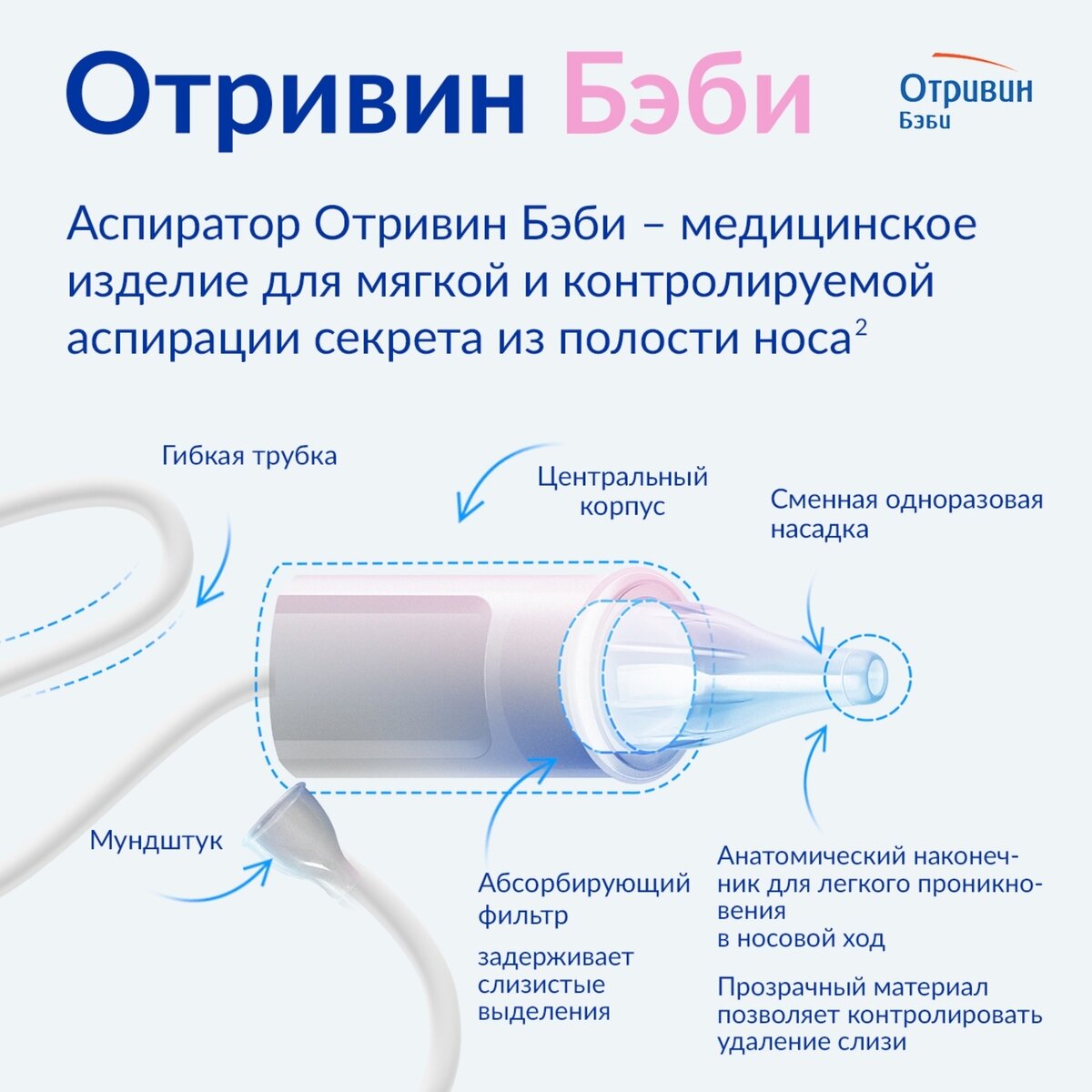 Отривин Бэби насадки сменные одноразовые для назального аспиратора с абсорбирующим фильтром, гигиеничные, 10 шт интересное: