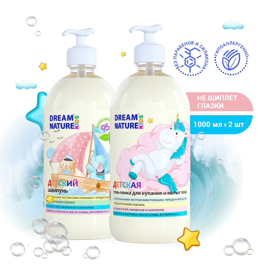 Набор детских средств DREAM NATURE Ромашка Шампунь + Гель пенка для купания интересное:
