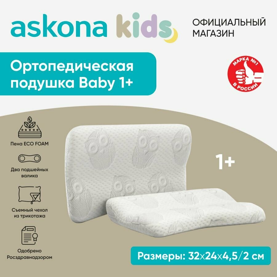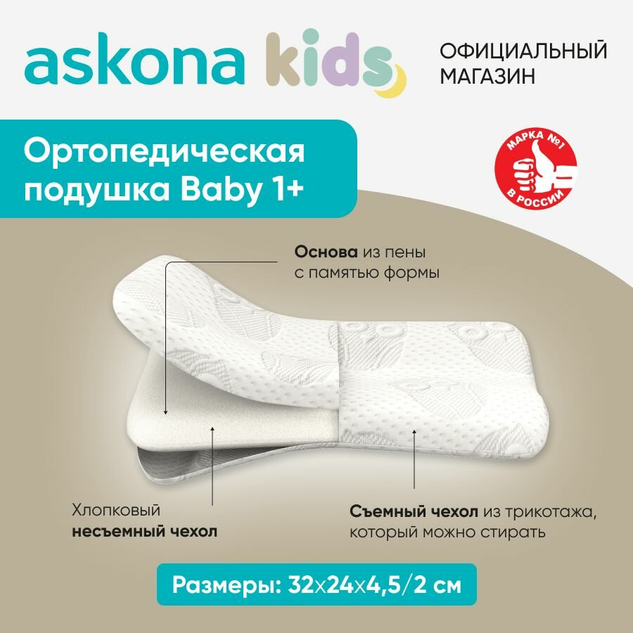 Анатомическая подушка Askona (Аскона) детская ортопедическая Baby 1+ интересное:
