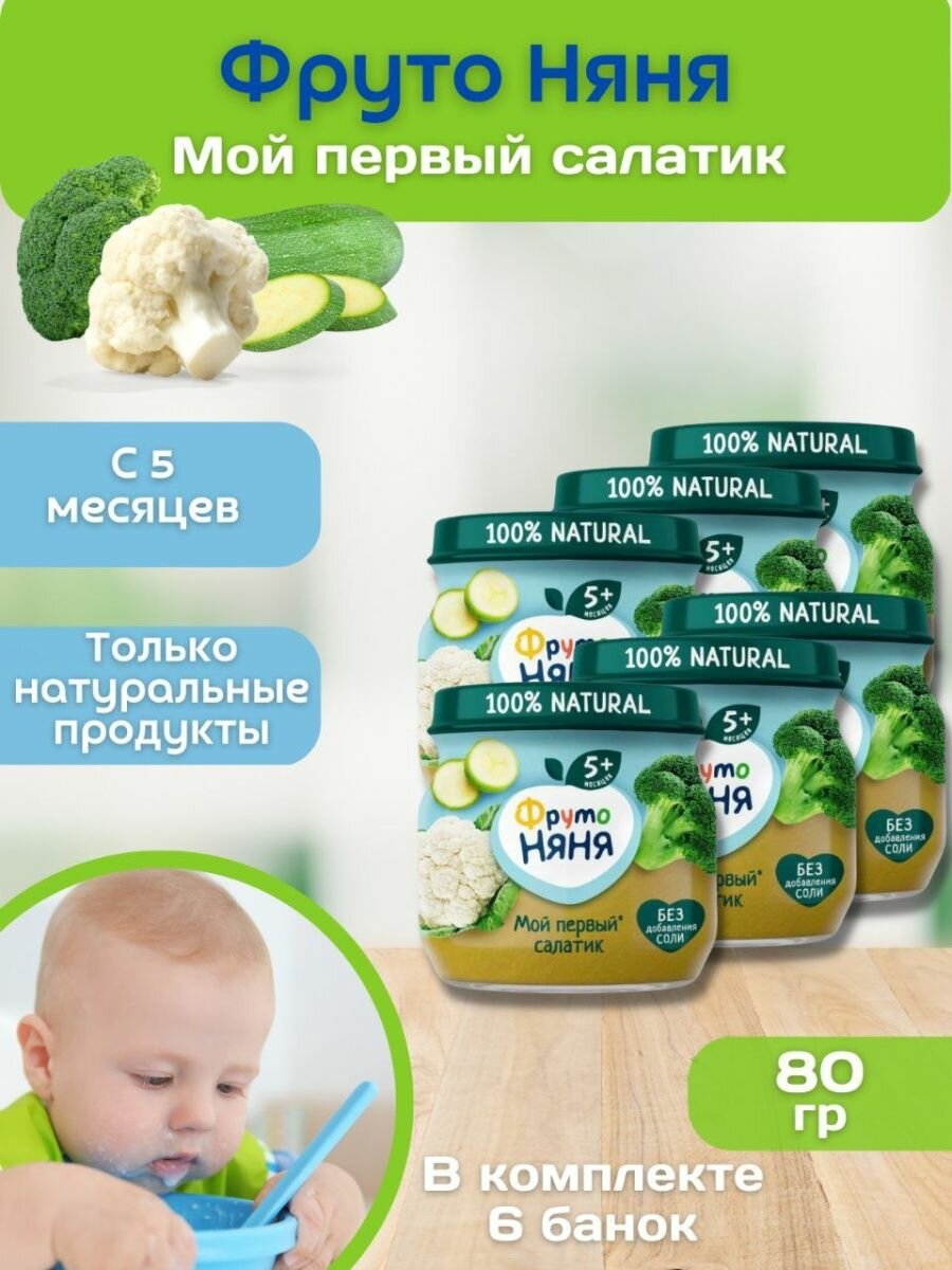 Пюре овощное ФрутоНяня с 5 месяцев Мой первый салатик, 80 г, 6 шт интересное: