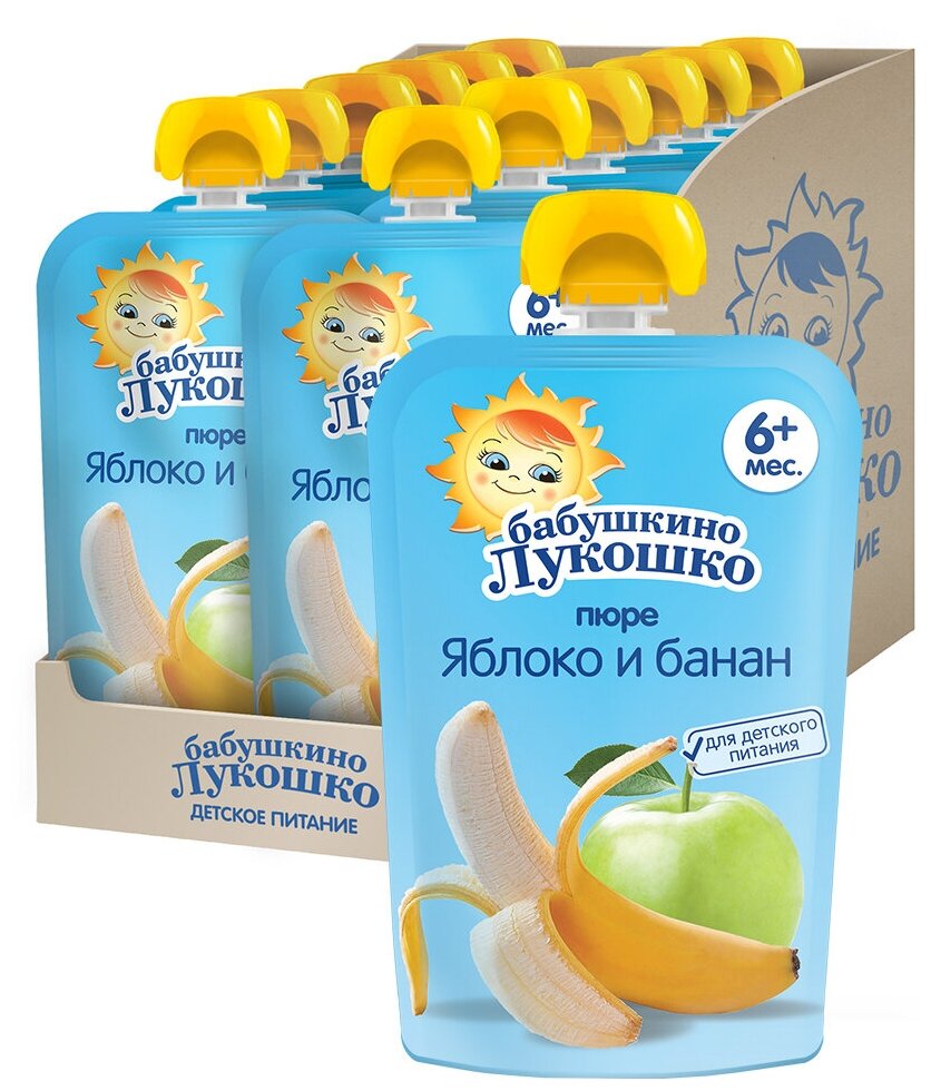 Бабушкино Лукошко яблоко-банан, с 6 месяцев, мягкая упаковка, 90 г, 12 шт.