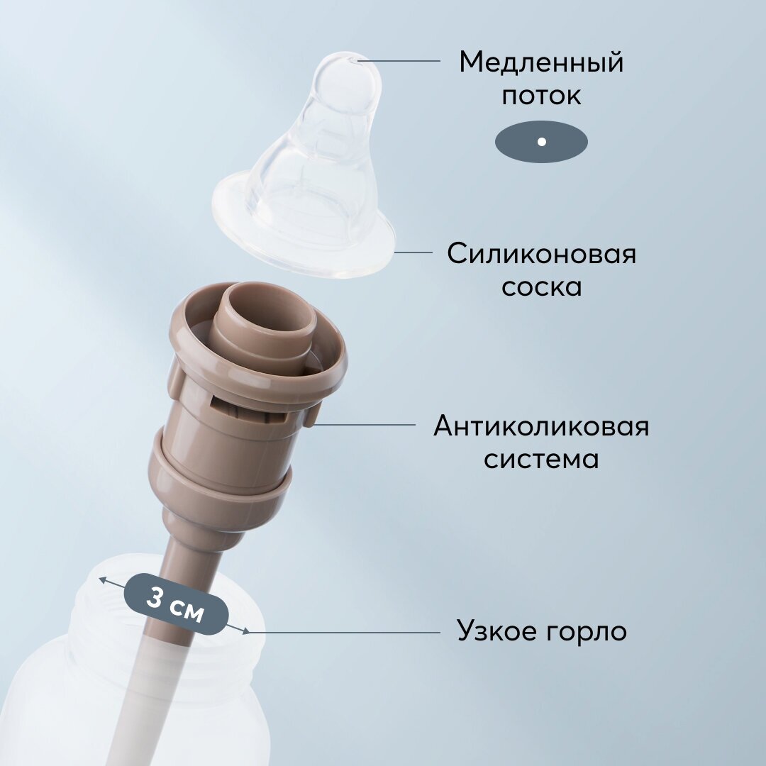 Сохранить10015, Антиколиковая бутылочка для кормления от 0 месяцев Happy Baby, с соской, медленный поток, 250 мл, коричневая с мишкой интересное: