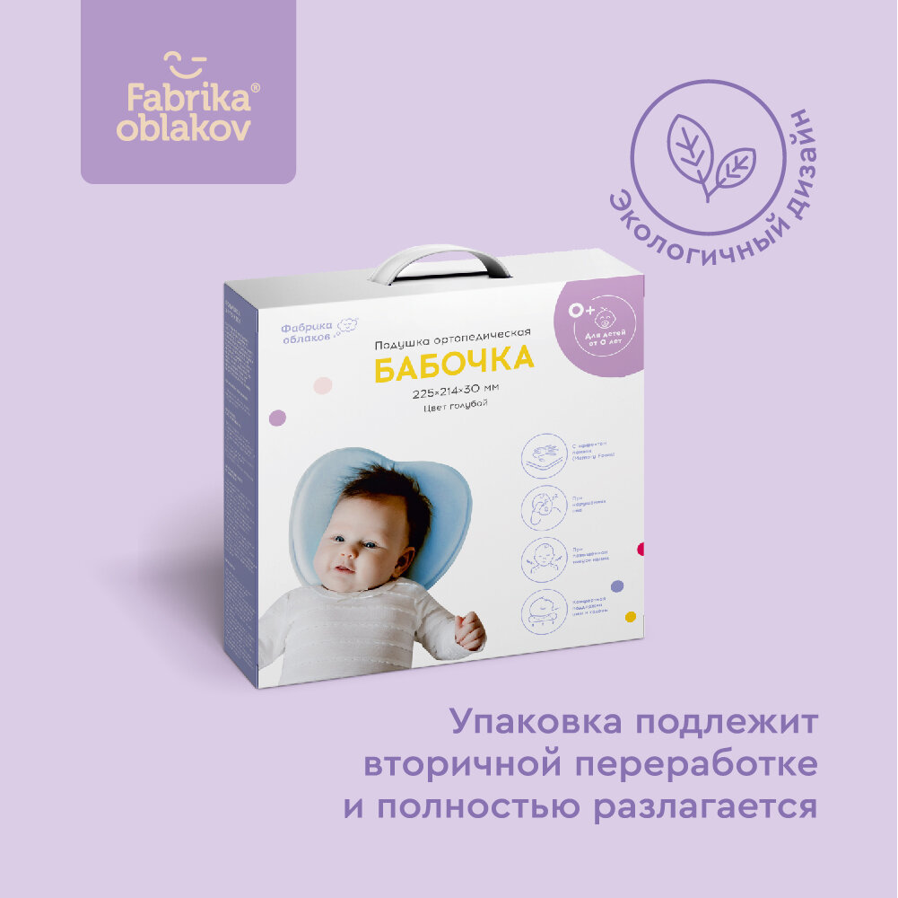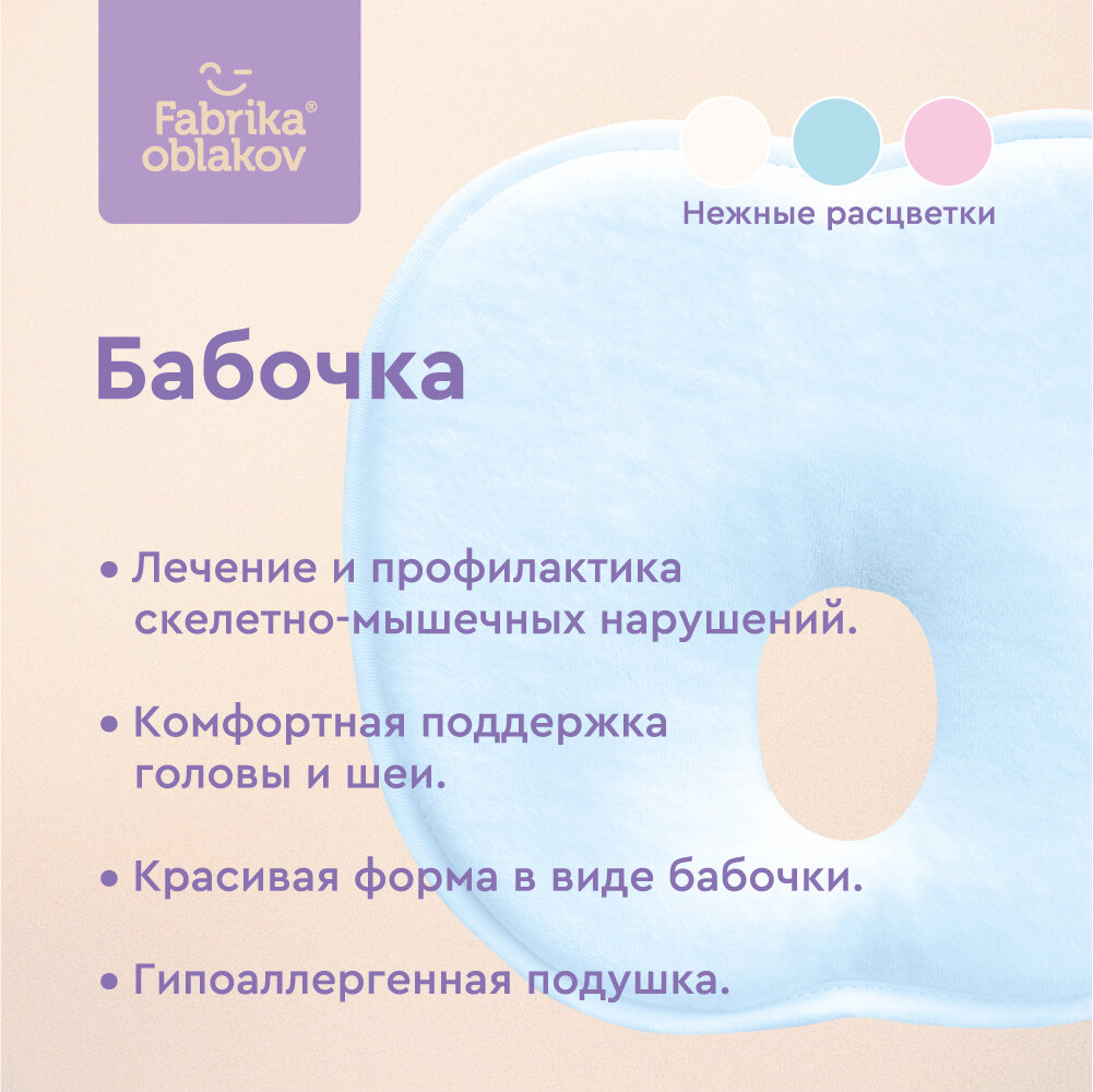 Подушка ортопедическая для новорожденных « Бабочка» (цвет голубой) интересное:
