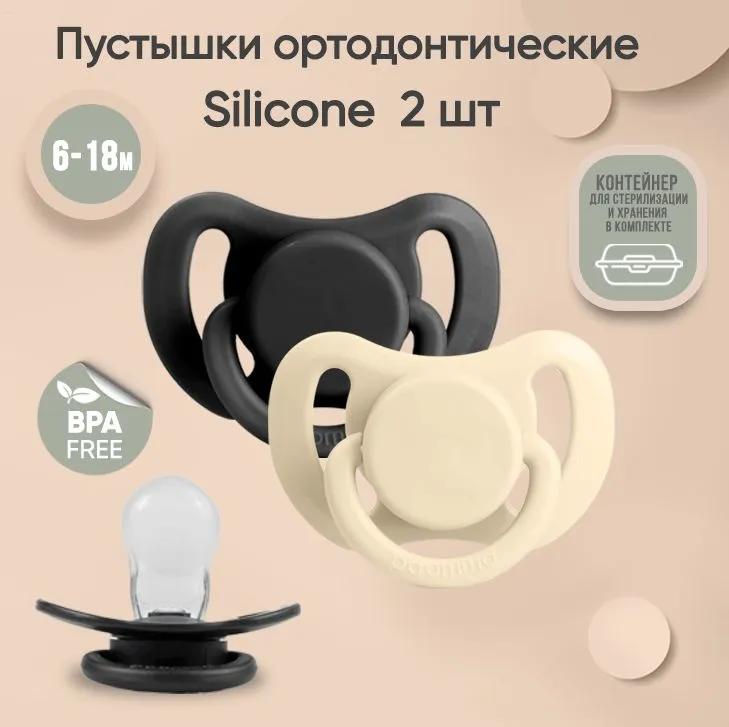 Купить Набор силиконовых пустышек Paomma 6-18 мес., 2 шт. в контейнере, Almond Milk/Black