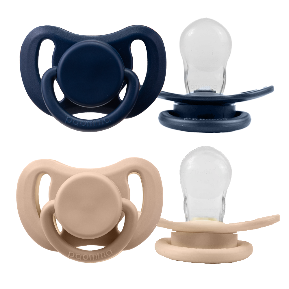 Купить Набор силиконовых пустышек Paomma 6-18 мес., 2 шт. в контейнере, Navy / Hazelnut