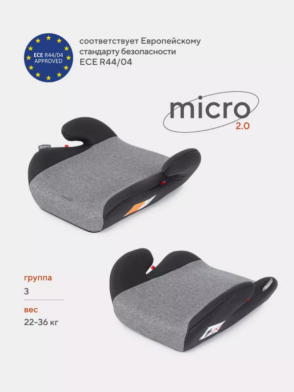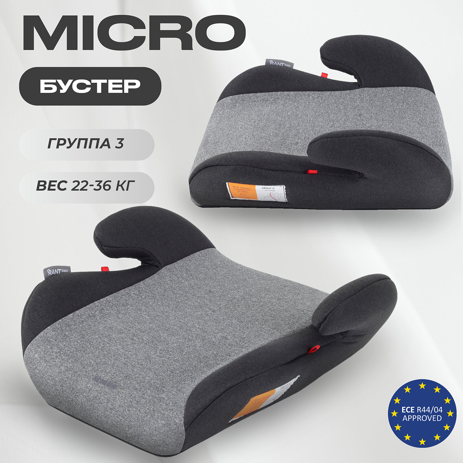 Бустер автомобильный детский Rant basic Micro ZY03 группа 3 от 6 до 12 лет вес 22-36 кг, Grey интересное: