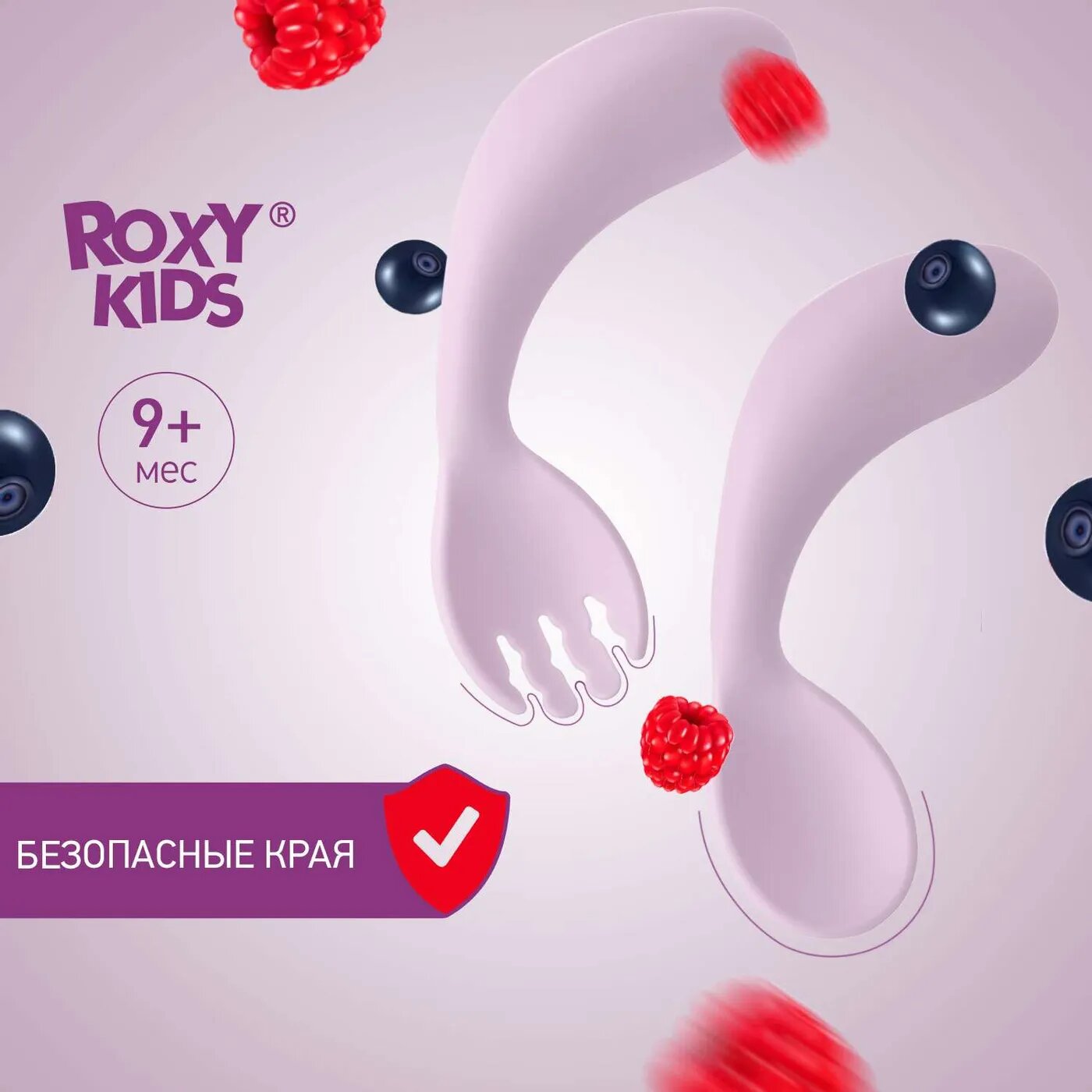 Набор столовых приборов ROXY-KIDS для малышей ложка и вилка цвет сиреневый интересное: