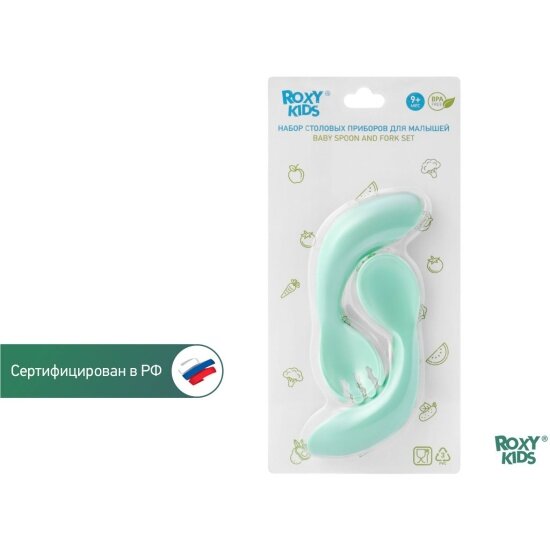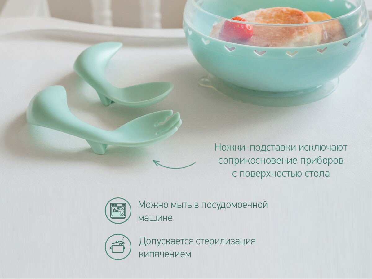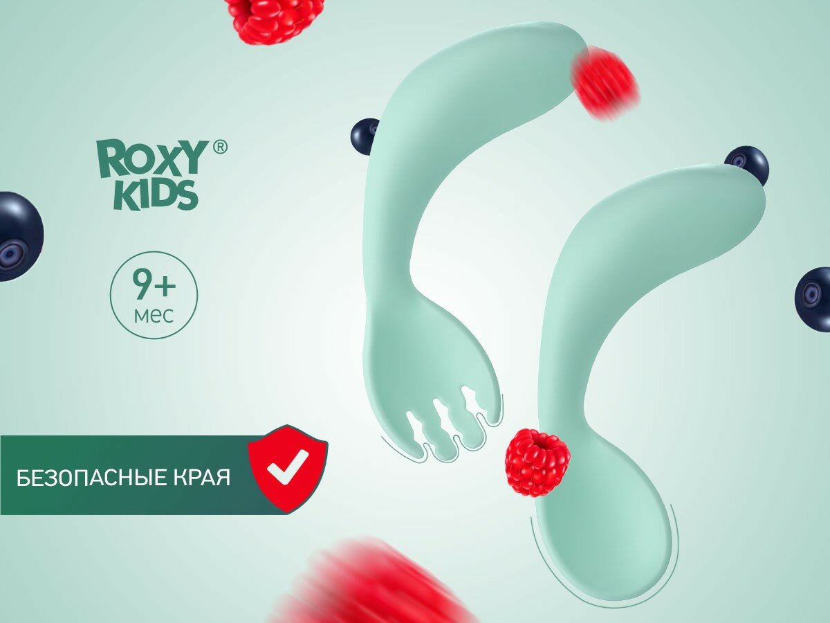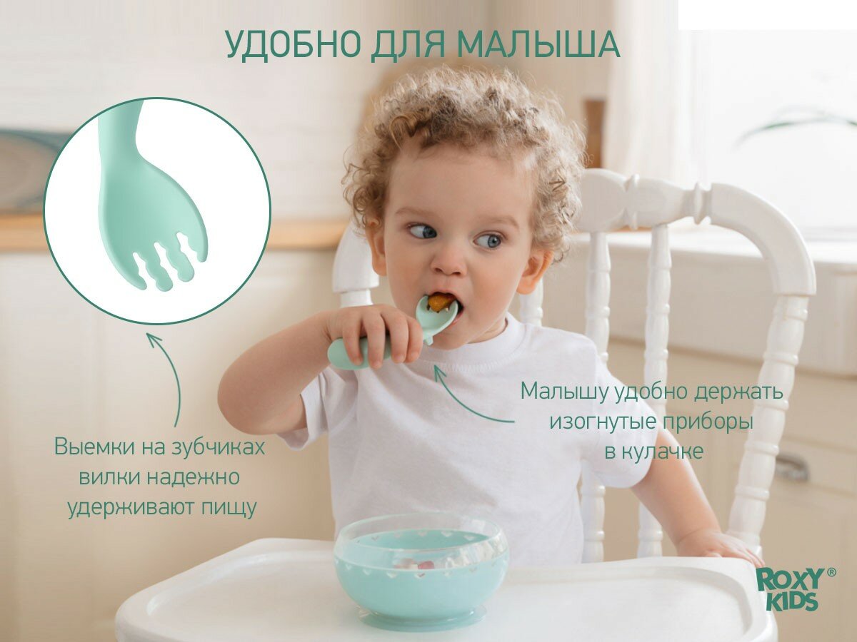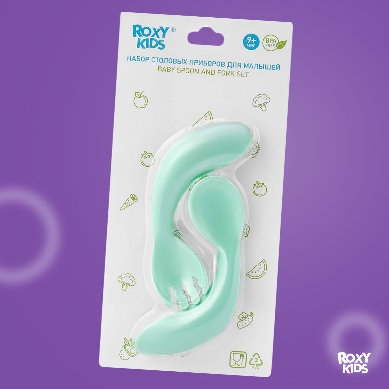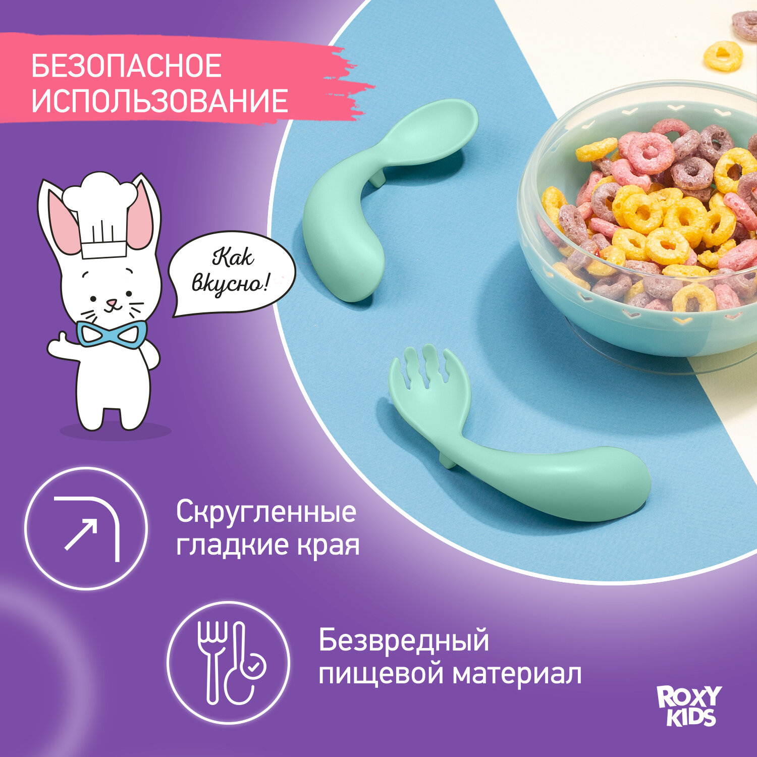 Набор столовых приборов для малышей Roxy-Kids, ложка и вилка, мятный