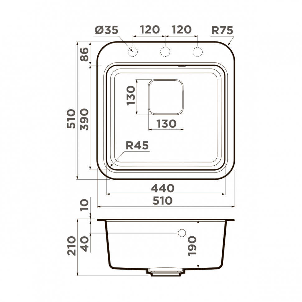 Кухонная мойка OMOIKIRI Tasogare 51-BL, кварц, 51см х 51см, черный 4993742