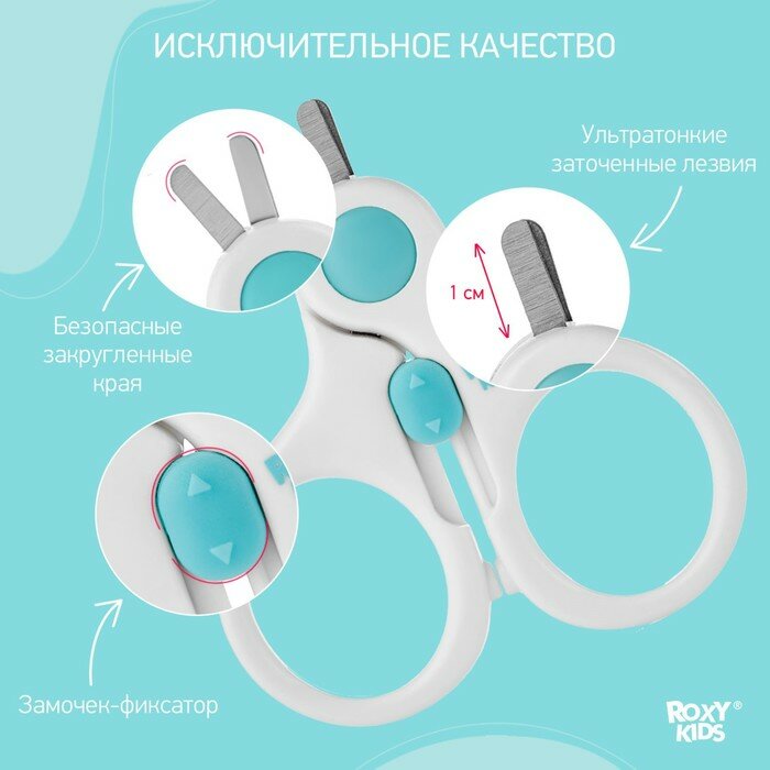 Купить Маникюрные ножницы детские для новорожденных и малышей ROXY-KIDS с замочком и ультратонкими лезвиями, цвет голубой