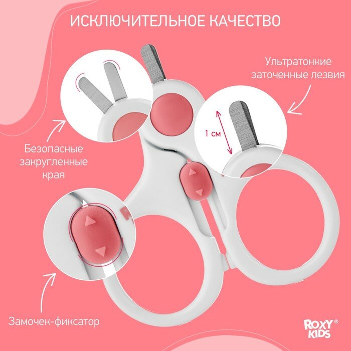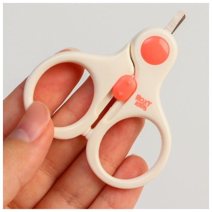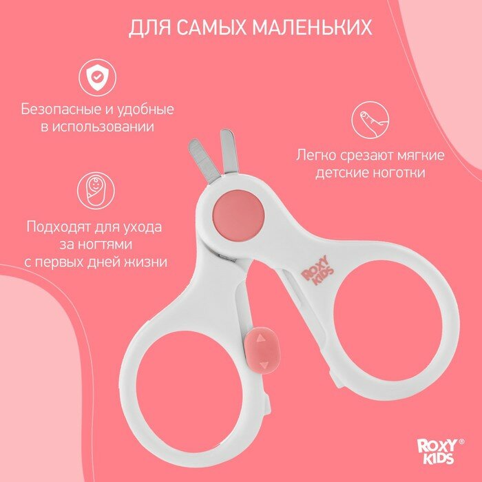 Маникюрные ножницы детские для новорожденных и малышей ROXY-KIDS с замочком и ультратонкими лезвиями, цвет коралловый