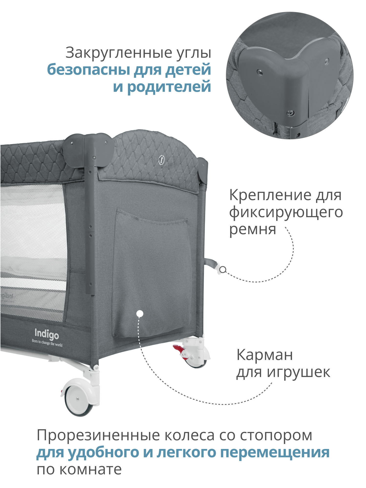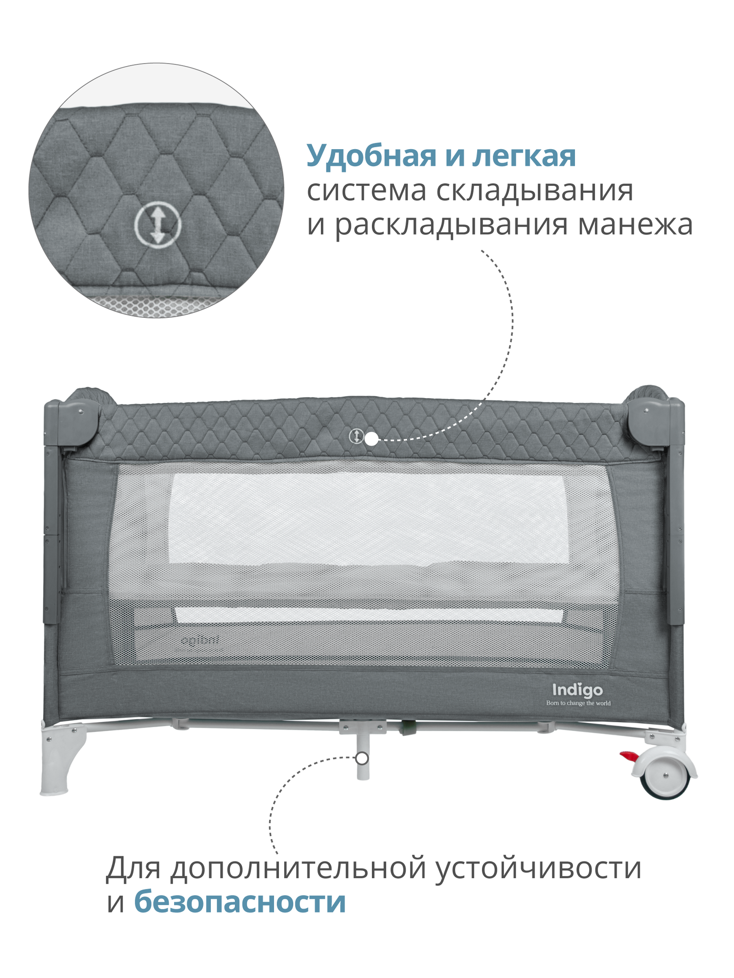 Манеж-кровать 3 в 1 Indigo Bon-Bon, 0-36 мес, складной, 2 уровня, серый интересное: