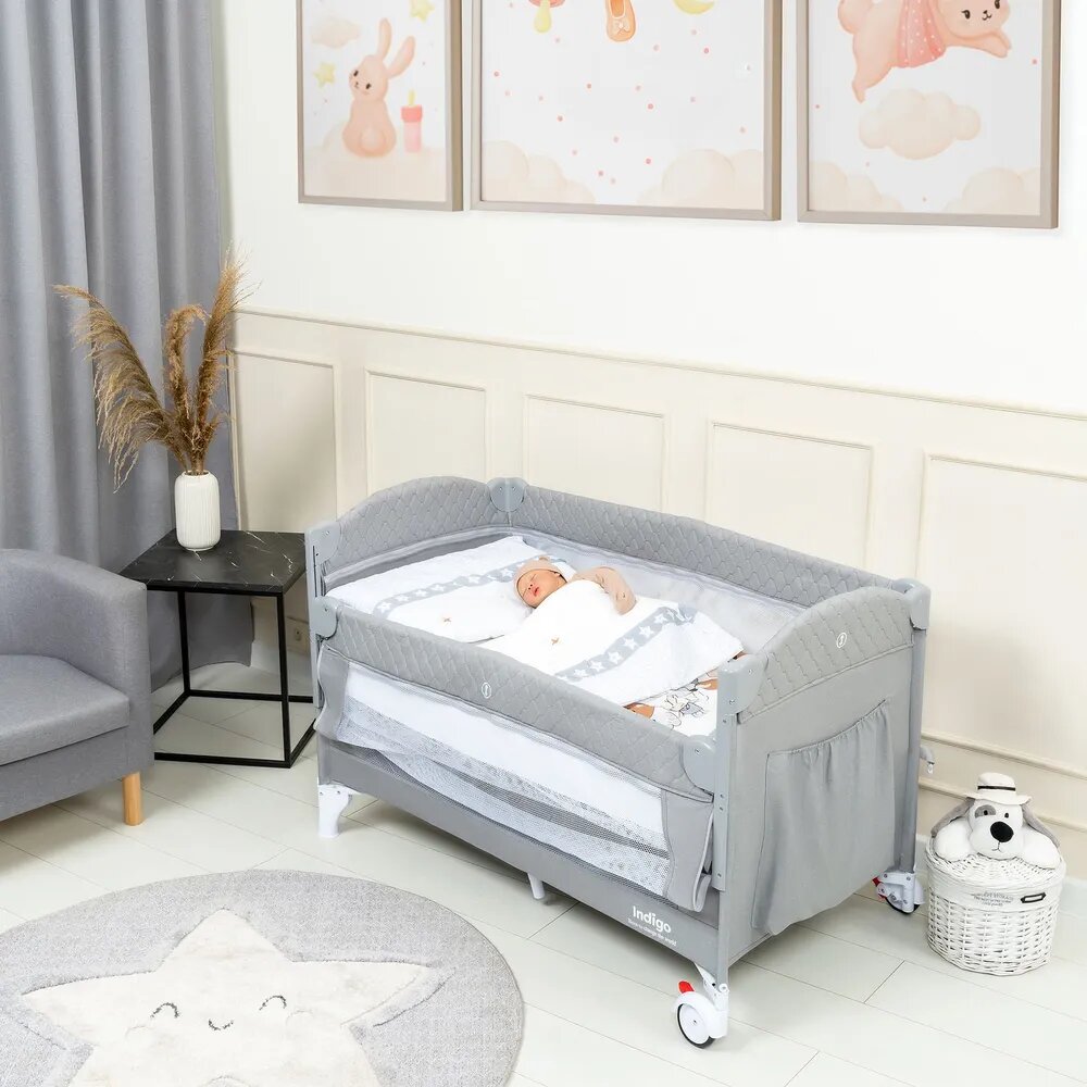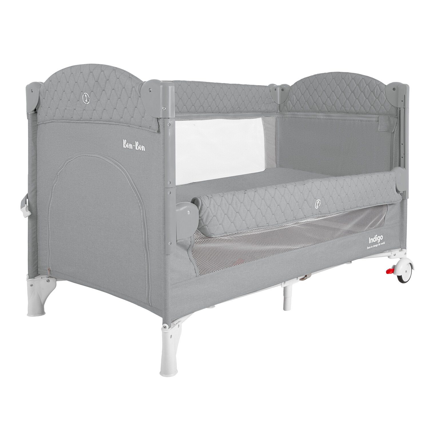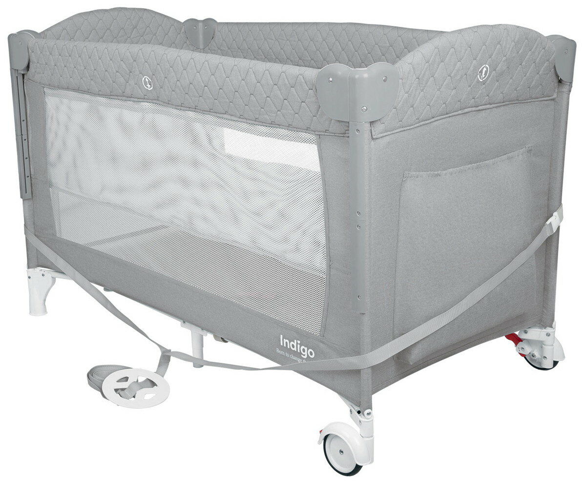 Манеж-кровать 3 в 1 Indigo Bon-Bon, 0-36 мес, складной, 2 уровня, серый
