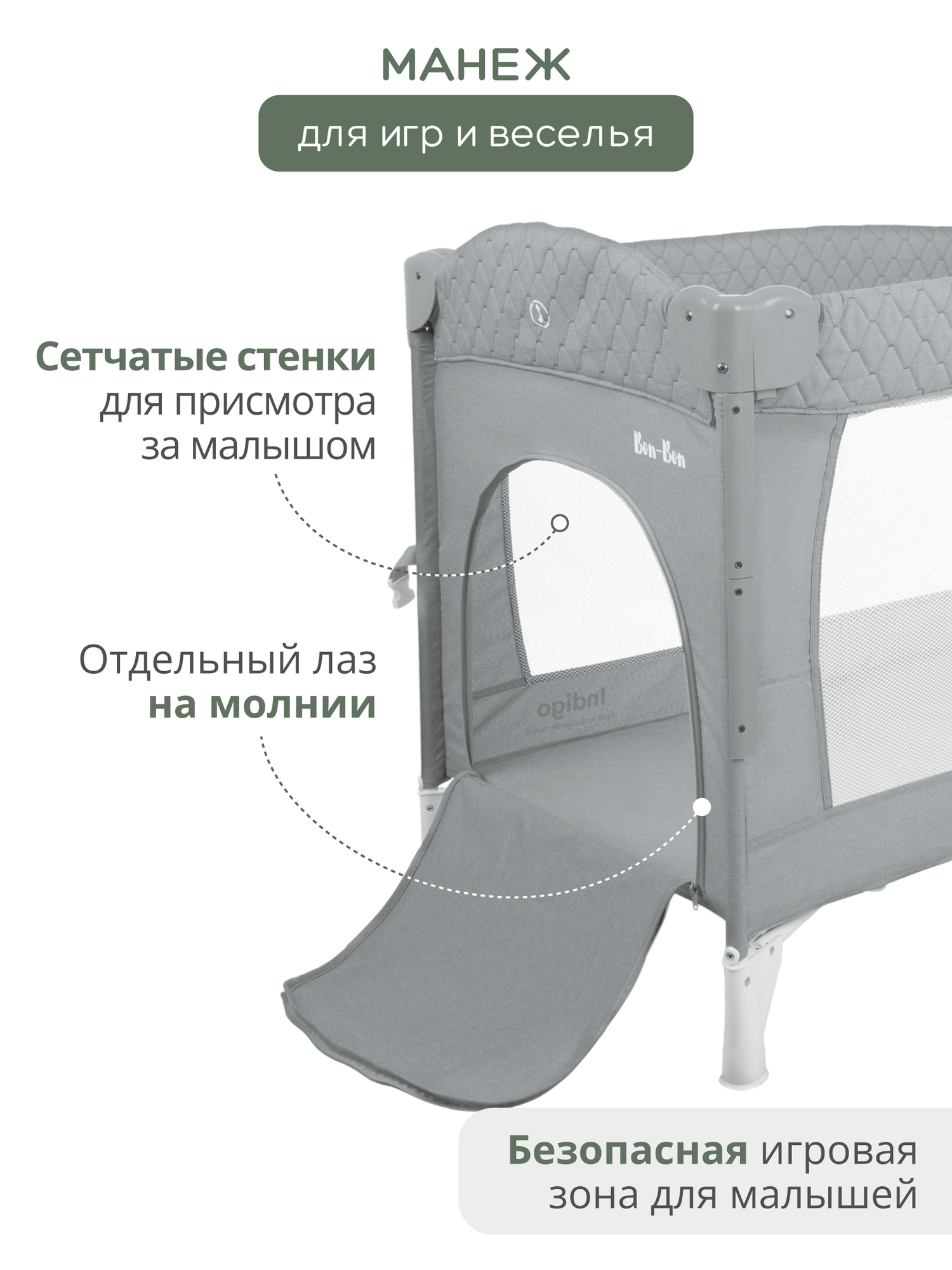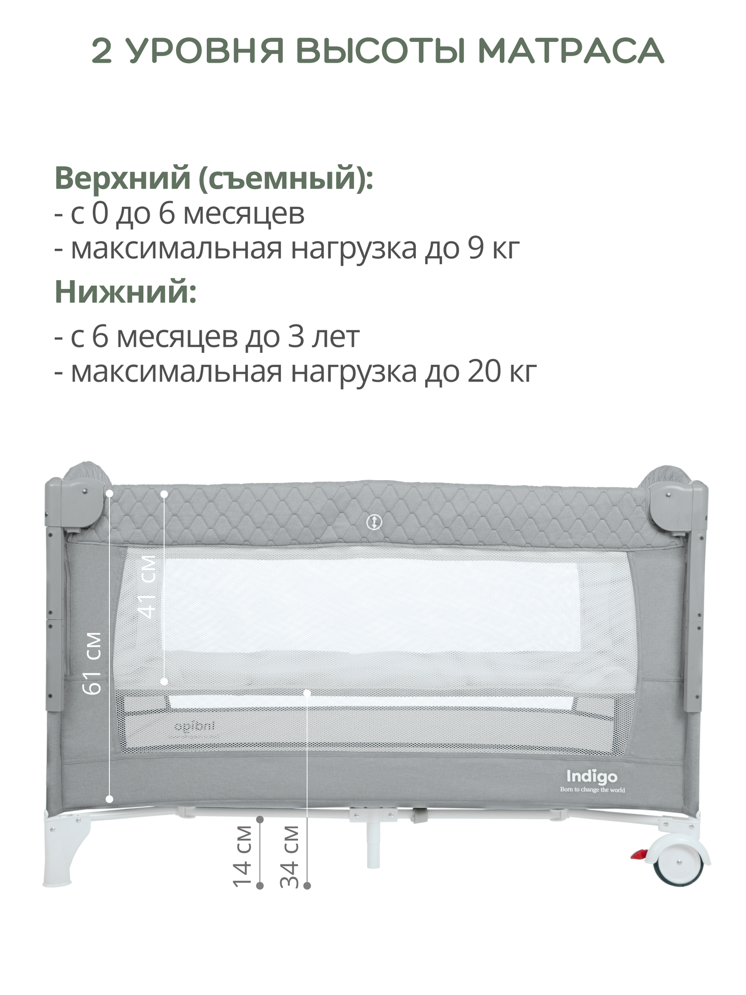 Манеж-кровать 3 в 1 Indigo Bon-Bon, 0-36 мес, складной, 2 уровня, светло-серый интересное: